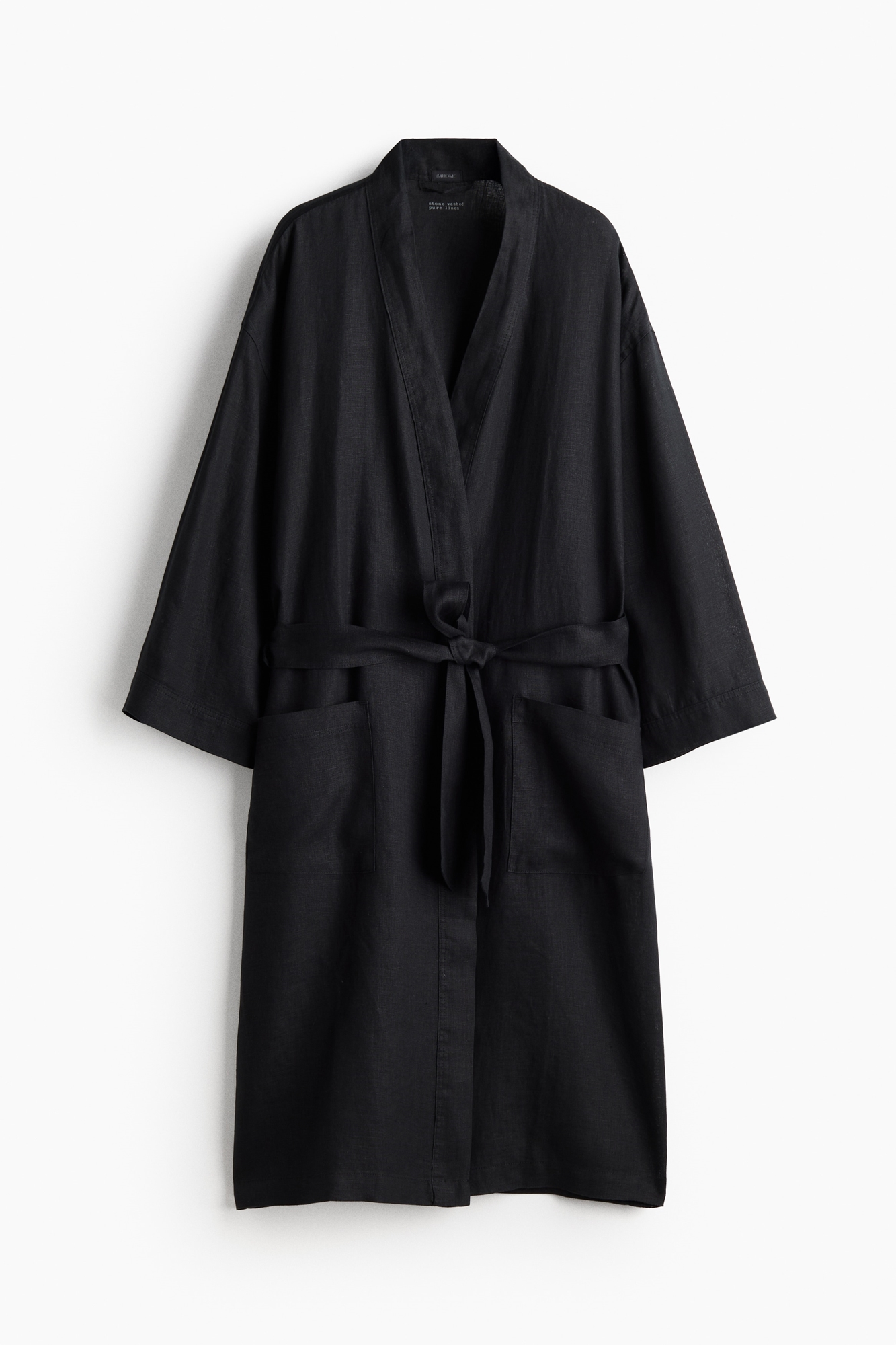 Стираный льняной халат с двумя карманами и съемным поясом-завязкой. Унисекс.