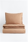 Постельное белье для односпальной кровати из стираного, приятно мягкого льна для высокого комфорта во время сна. Пододеяльник застегивается снизу на потайные металлические шпильки. Наволочка с гостиничным креплением. Постельное белье - это прочный и, при правильном уходе, долговечный материал, который с каждой стиркой становится все мягче и красивее. Льняное постельное белье идеально подходит для тех, кому легко становится слишком жарко во время сна, так как лен впитывает влагу и тем самым обеспечивает приятную прохладу. Плотность нитей 104.