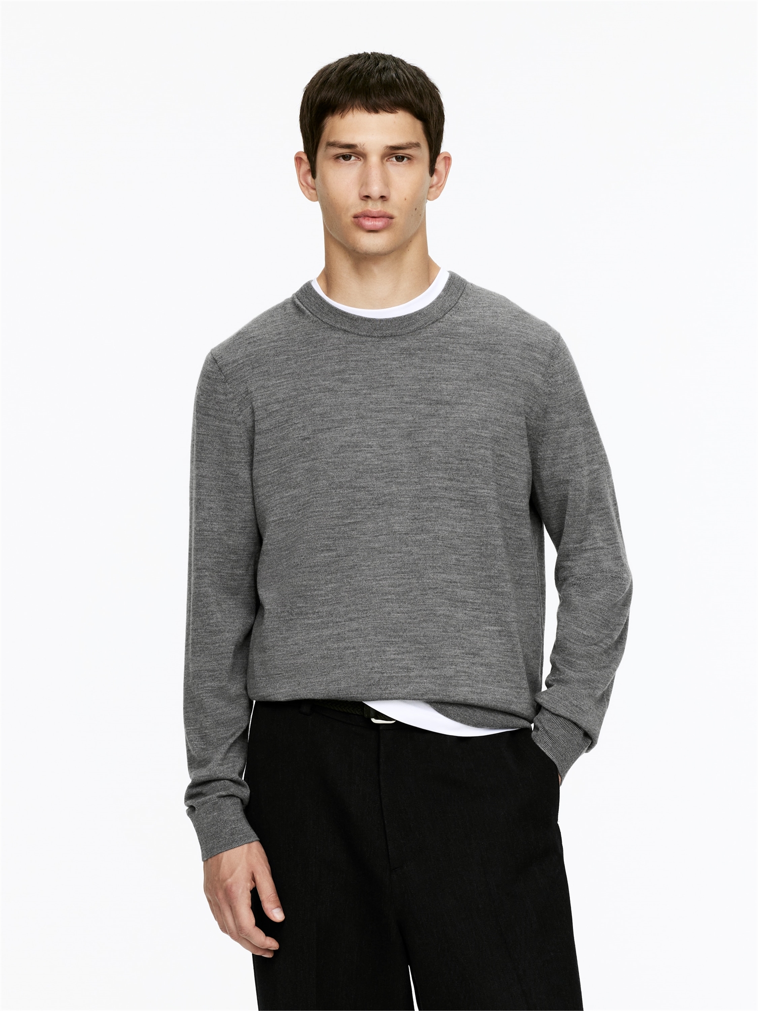 Джемпер тонкой вязки из мягкой мериносовой шерсти. Классическая горловина с ребристыми деталями. Обычный крой.