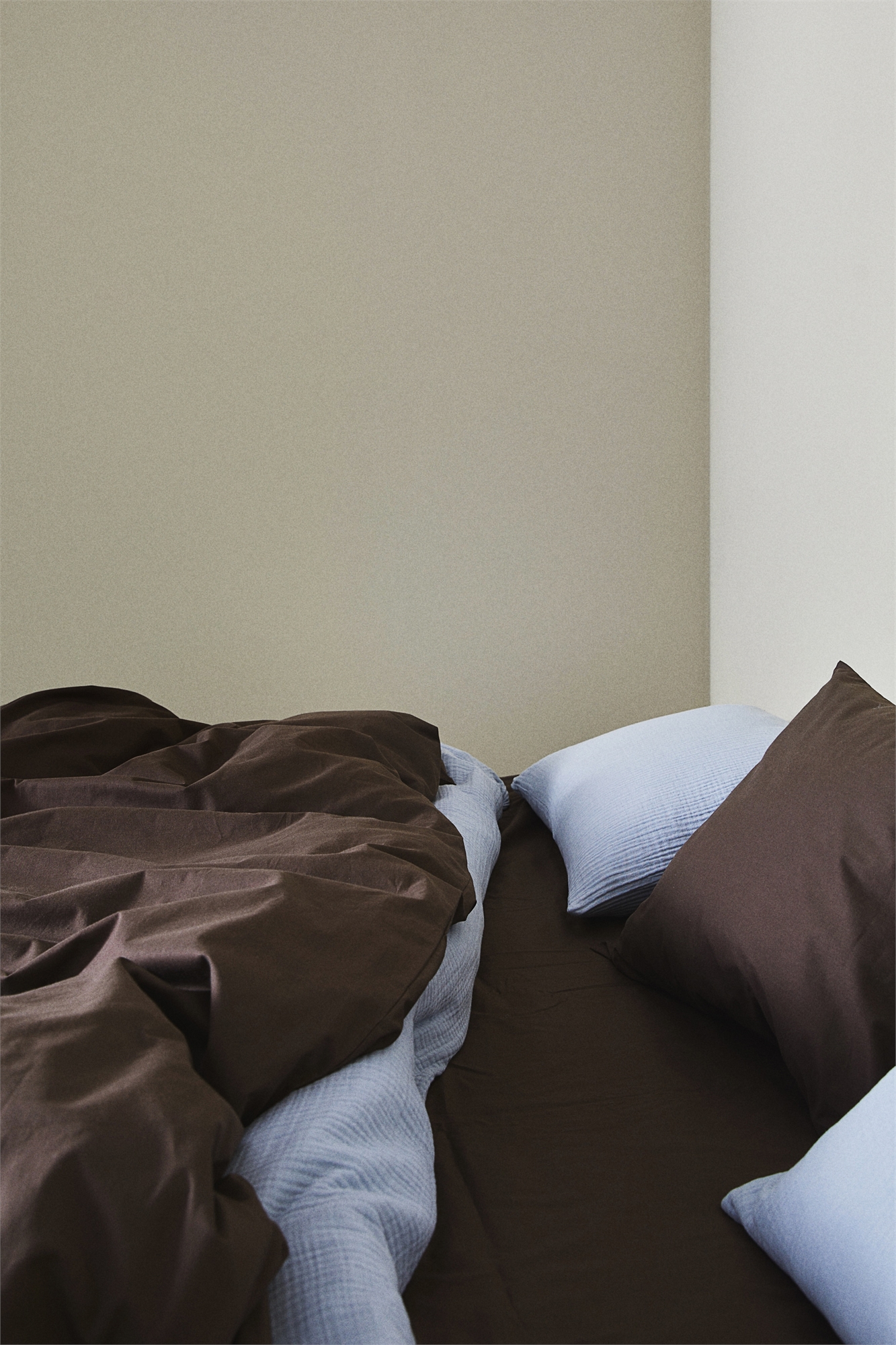 Двойной комплект постельного белья из хлопка с плотностью 144 нити. Пододеяльник имеет открытый низ для быстрого и легкого застилания кровати. Две наволочки с конвертом.