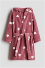 Халат из мягкого флиса с капюшоном, передними карманами и поясом-завязкой на талии.
