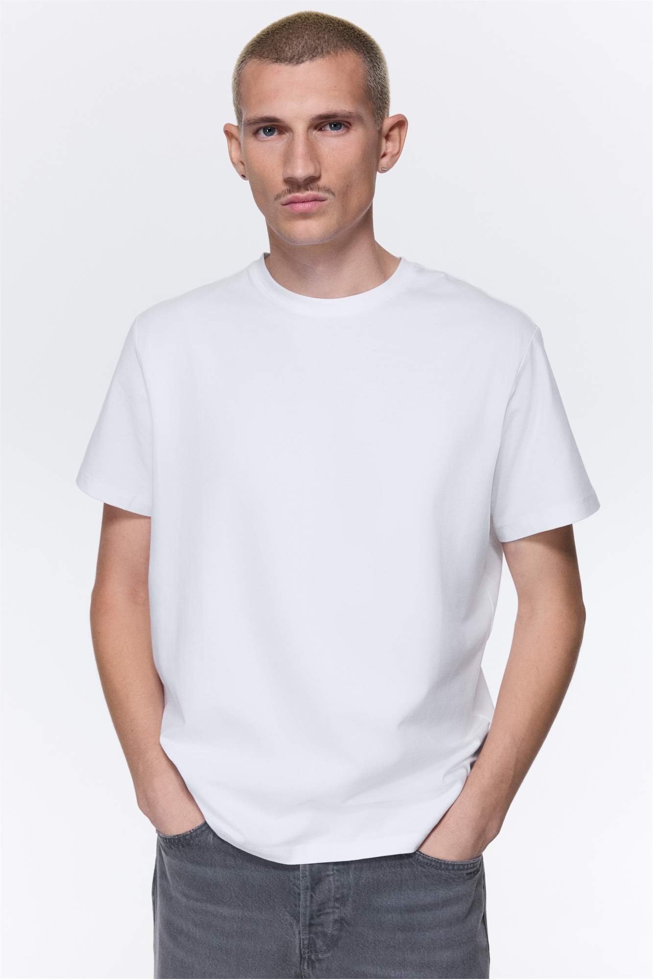 Футболка из легкого хлопкового джерси с круглым вырезом с ребристой отделкой и прямым подолом. Облегающий крой, который облегает контуры тела, создавая приталенный силуэт.