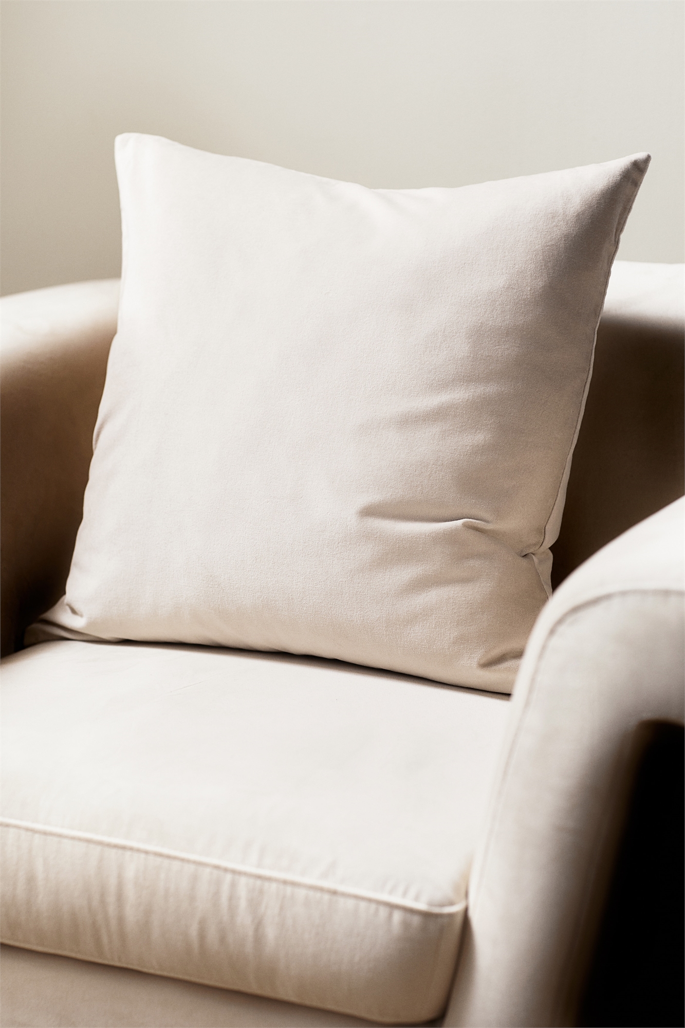 Чехол для подушки из хлопкового бархата с потайной молнией.