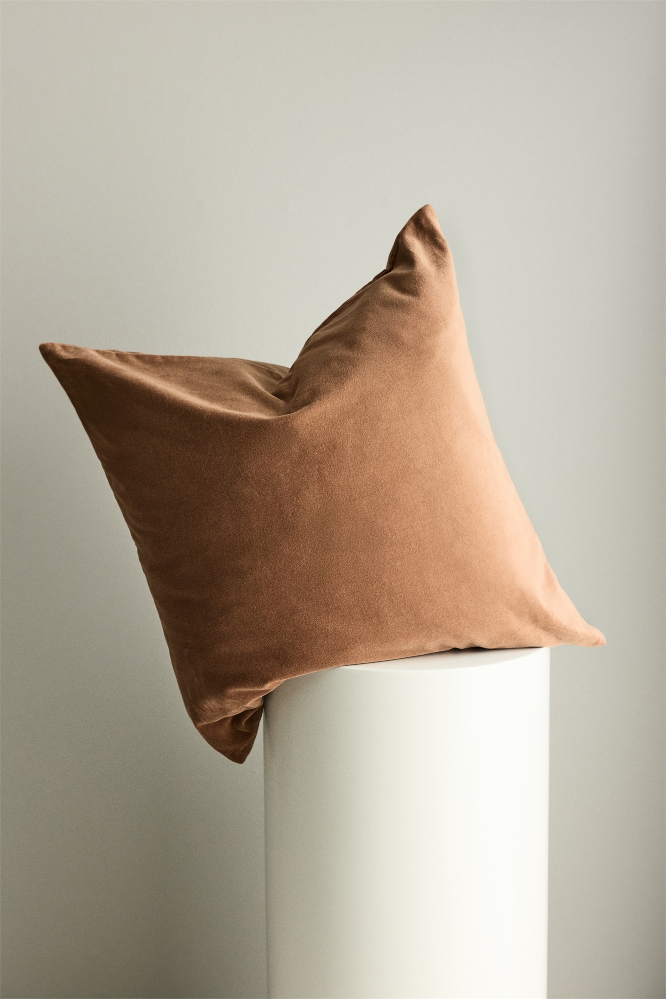 Чехол для подушки из хлопкового бархата с потайной молнией.