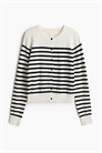 Кардиган из мягкой вискозы тонкой вязки с пуговицами спереди и отделкой в рубчик по вырезу горловины, манжетам и подолу.
