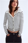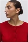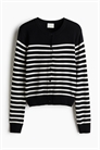 Кардиган из мягкой вискозы тонкой вязки с пуговицами спереди и отделкой в рубчик по вырезу горловины, манжетам и подолу.