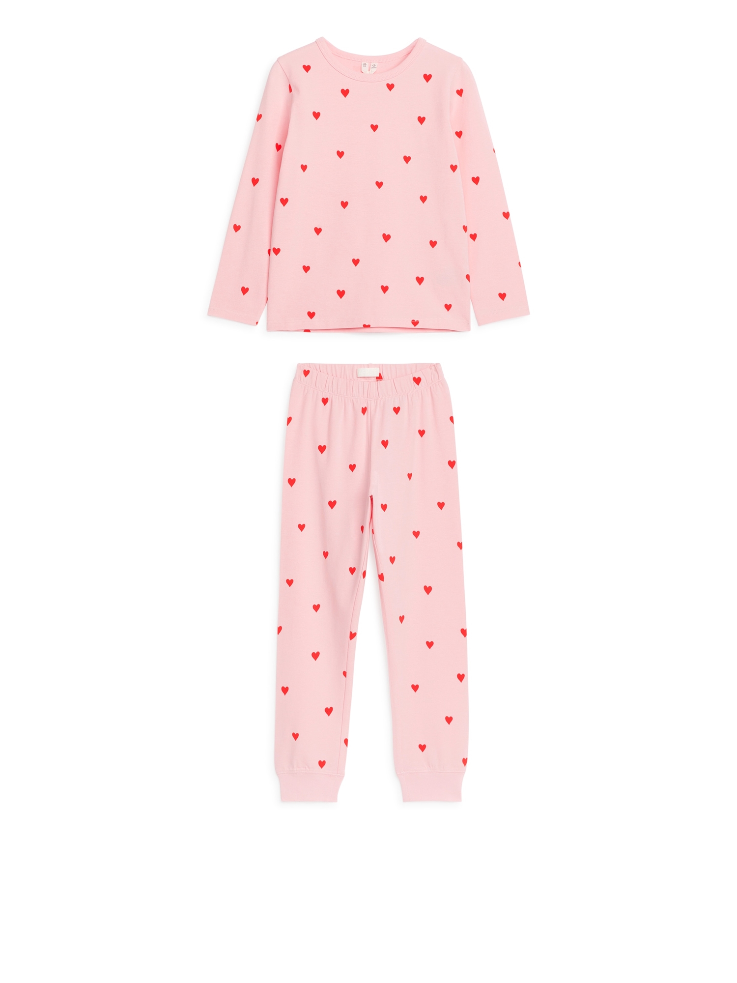 Эта пижама из двух частей, сшитая из мягкой ткани джерси, изготовлена из хлопка. Пижама с вырезом горловины и длинными рукавами и брюки с эластичной талией. Ребристые манжеты на рукавах и ногах.