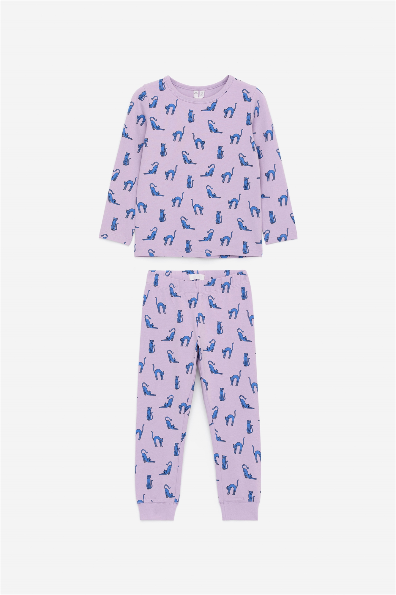 Эта пижама из двух частей, сшитая из мягкой ткани джерси, изготовлена из хлопка. Пижама с вырезом горловины и длинными рукавами и брюки с эластичной талией. Ребристые манжеты на рукавах и ногах.