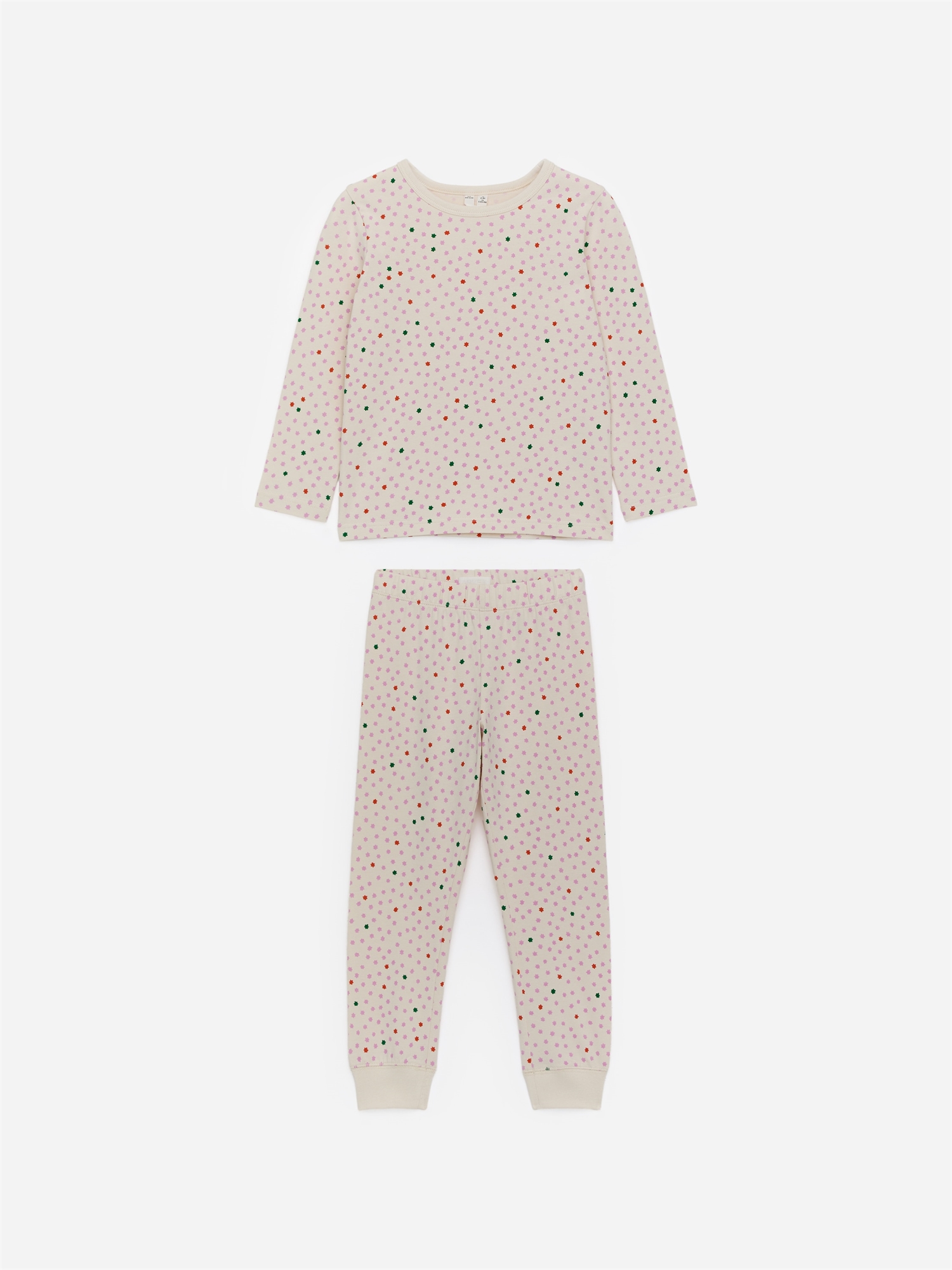 Эта пижама из двух частей, сшитая из мягкой ткани джерси, изготовлена из хлопка. Пижама с вырезом горловины и длинными рукавами и брюки с эластичной талией. Ребристые манжеты на рукавах и ногах.