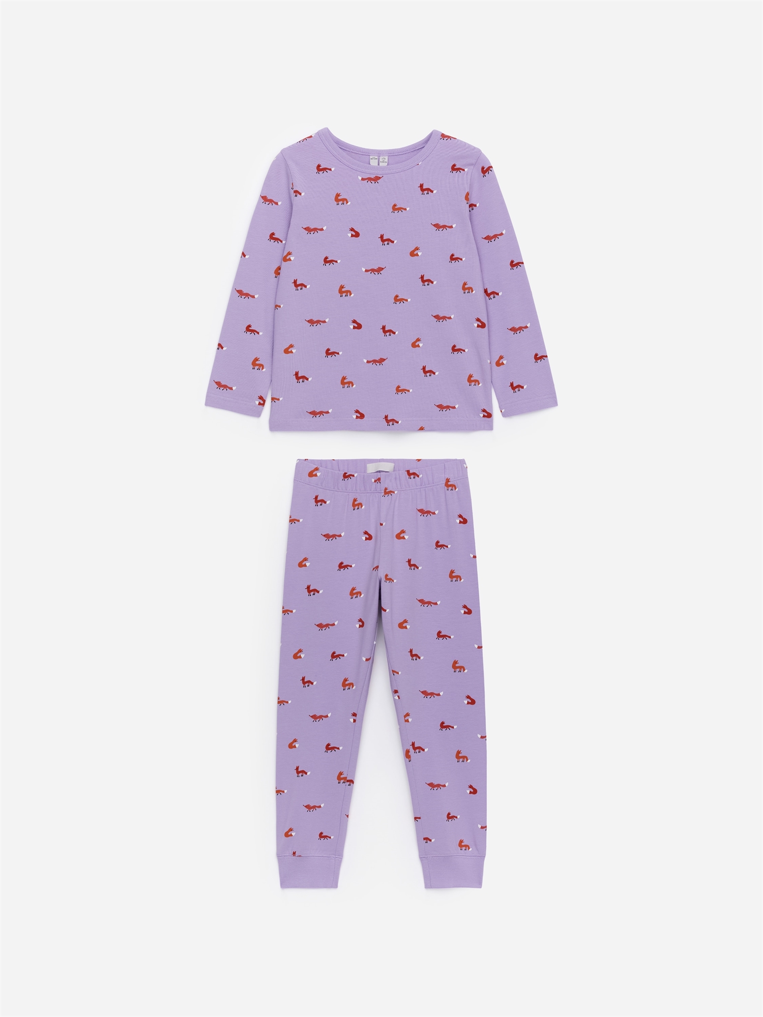 Эта пижама из двух частей, сшитая из мягкой ткани джерси, изготовлена из хлопка. Пижама с вырезом горловины и длинными рукавами и брюки с эластичной талией. Ребристые манжеты на рукавах и ногах.