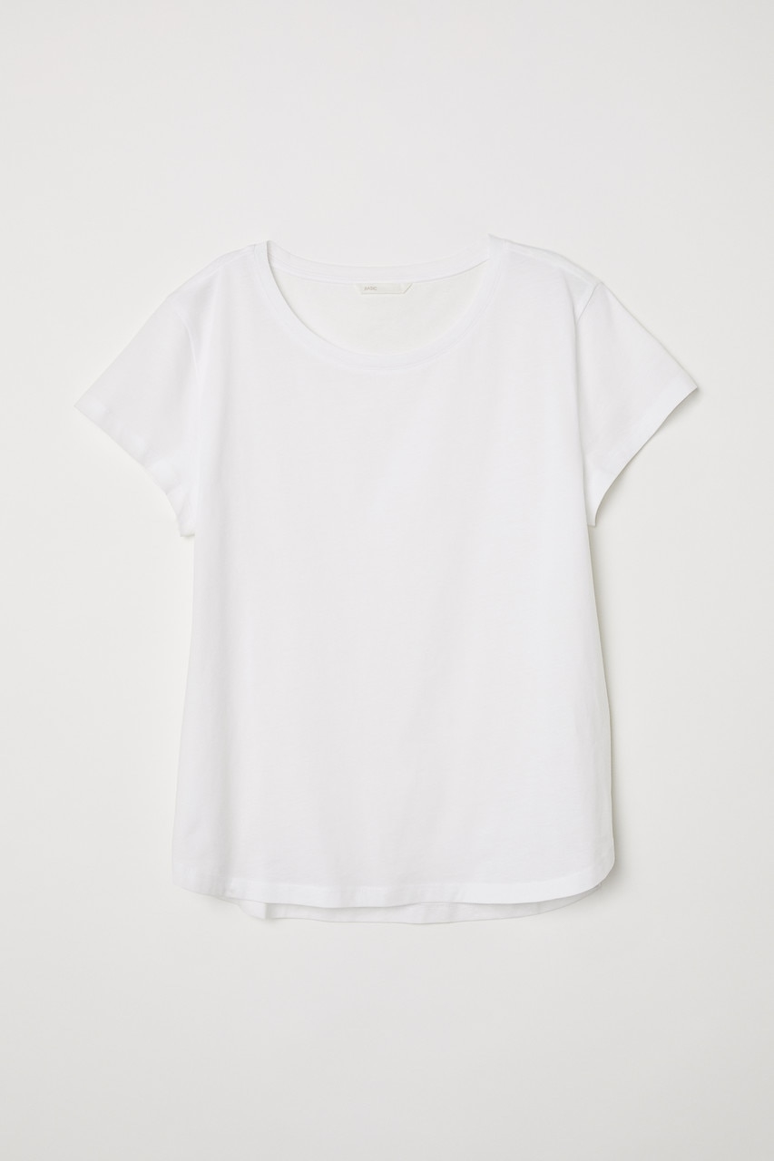 Футболка из легкого трикотажа с закругленным подолом. Слегка удлиненная сзади.