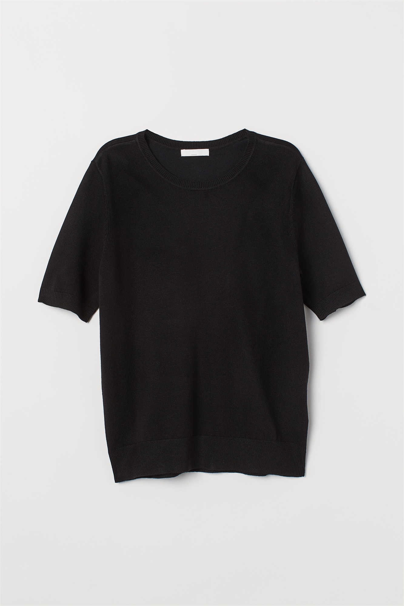 Джемпер с короткими рукавами из мягкой вискозной смеси тонкой вязки. Модель с ребристыми манжетами по вырезу горловины, рукавам и подолу.