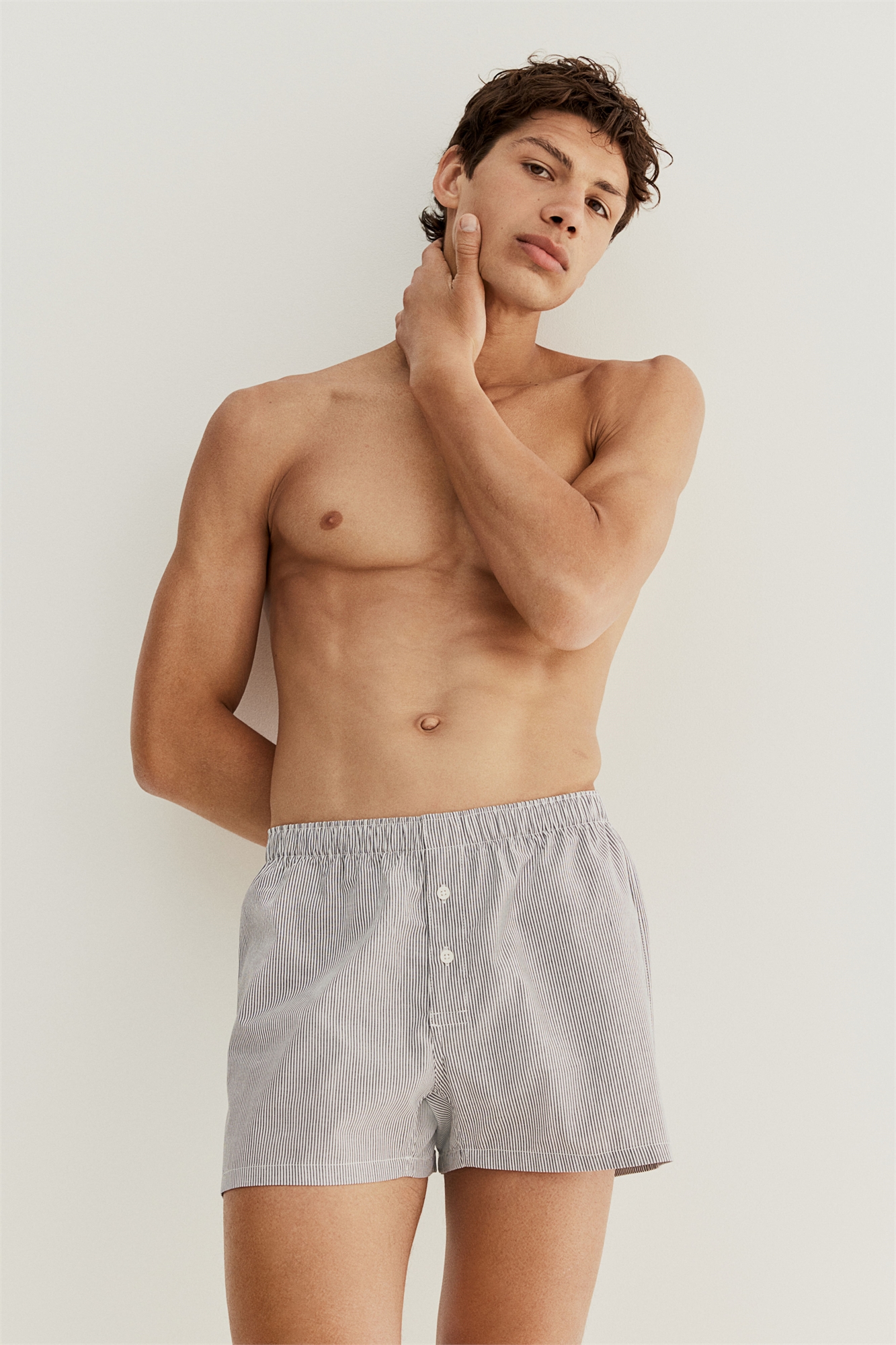 Трусы-боксеры из хлопка с эластичным поясом, длинными штанинами и ширинкой на пуговицах.