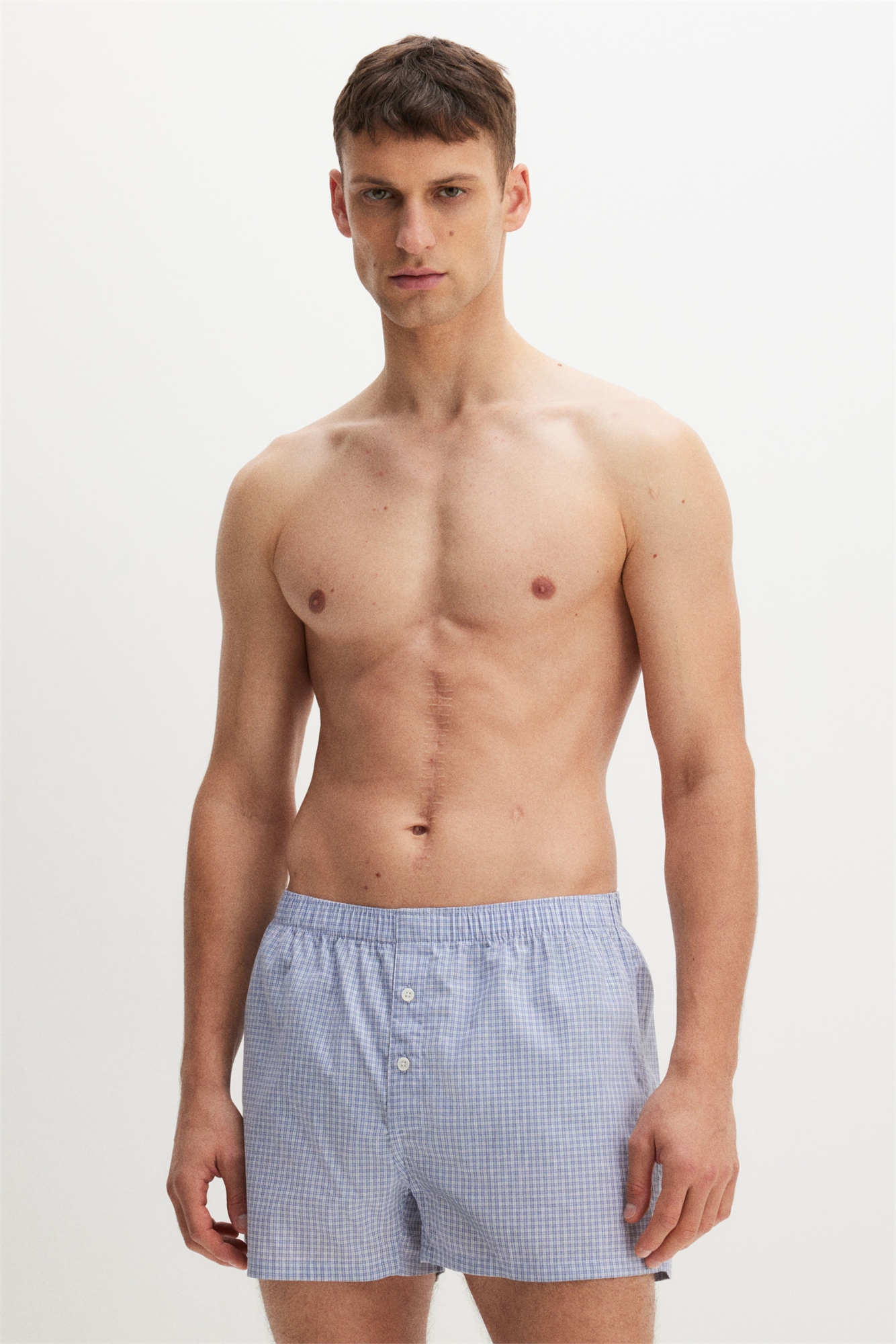 Трусы-боксеры из хлопка с эластичным поясом, длинными штанинами и ширинкой на пуговицах.