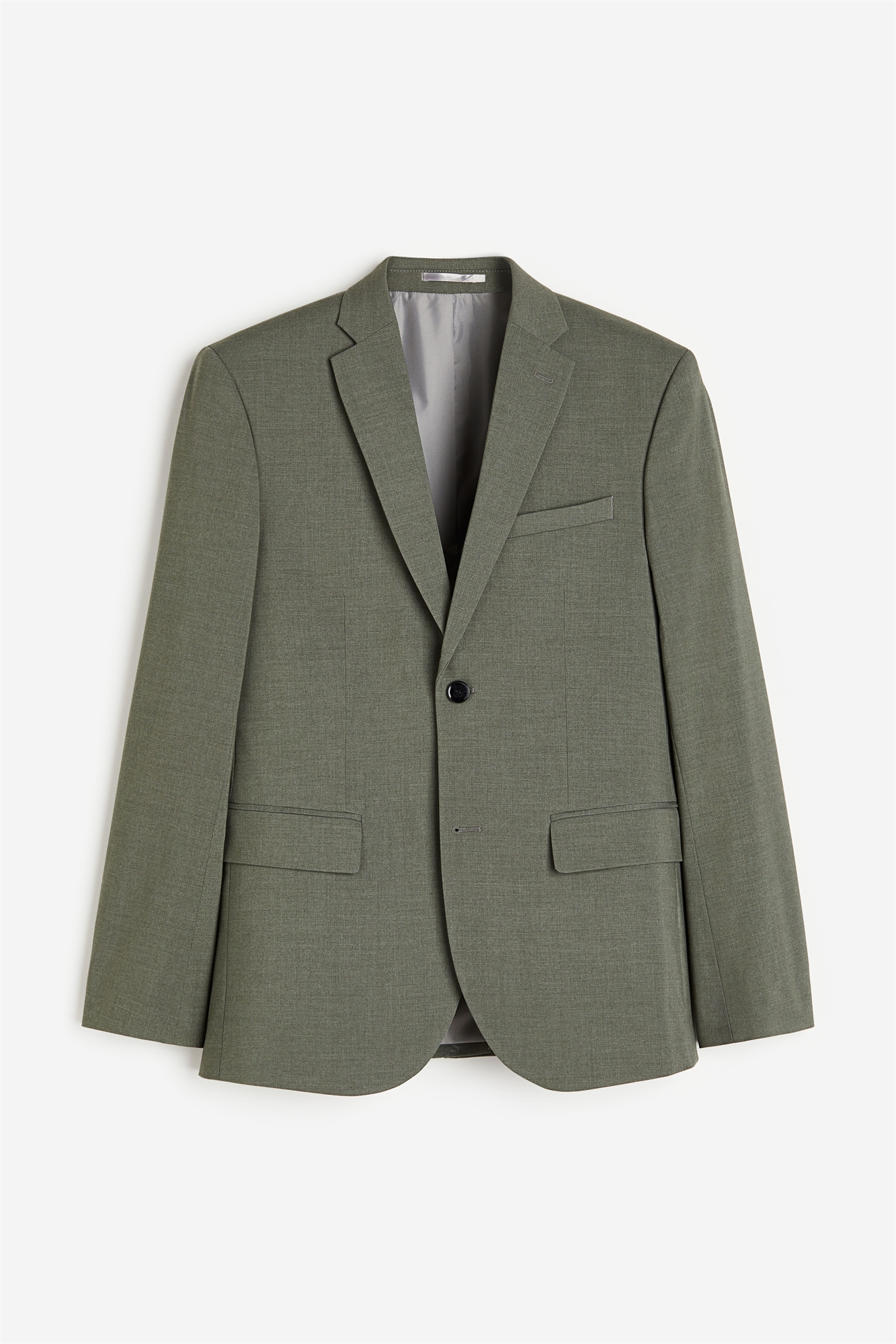 Однобортный пиджак из ткани стрейч с узкими лацканами с вырезом и декоративной петлей для пуговицы, нагрудным карманом, накладными передними карманами и одним внутренним карманом. Две пуговицы спереди, декоративные пуговицы на манжетах и один задний клапан. Зауженный крой, облегающий контуры тела и создающий приталенный силуэт. На подкладке.