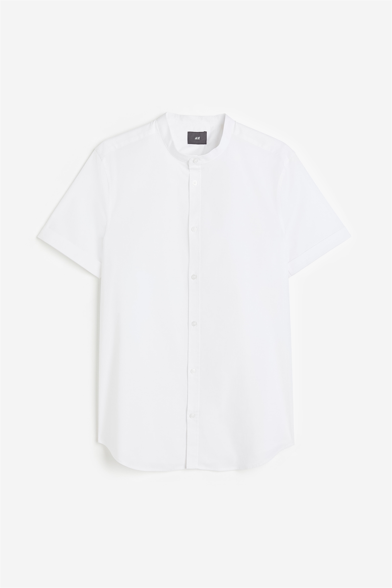 Рубашка с короткими рукавами из эластичной хлопковой ткани с узким воротником-стойкой, классической застежкой на пуговицы и фиксированными манжетами. Закругленный подол, ярмо и фигурные швы сзади. Muscle fit - зауженный крой с приталенной талией и узкими плечами создает привлекательный силуэт и подчеркивает формы тела.