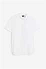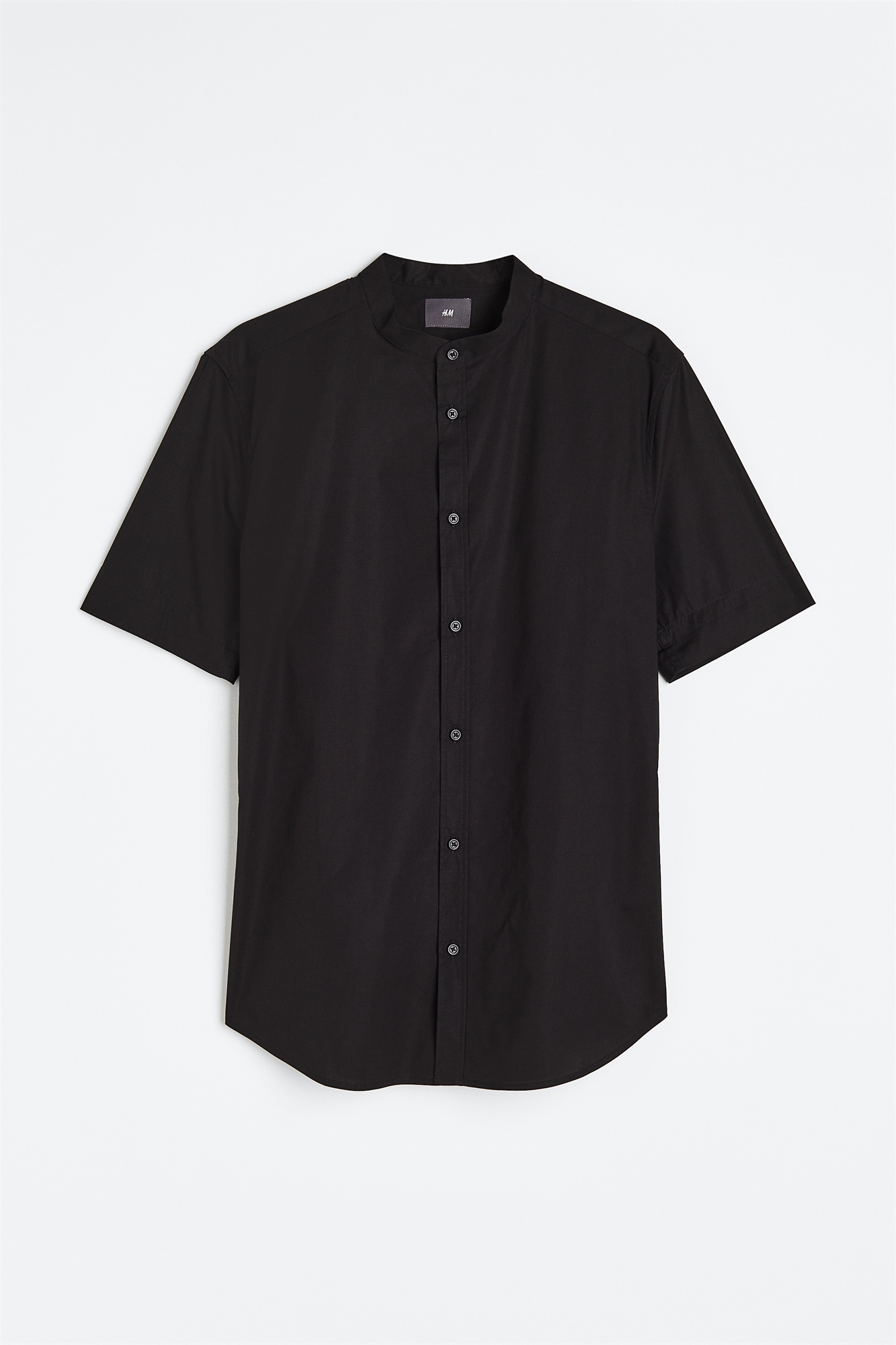 Рубашка с короткими рукавами из эластичной хлопковой ткани с узким воротником-стойкой, классической застежкой на пуговицы и фиксированными манжетами. Закругленный подол, ярмо и фигурные швы сзади. Muscle fit - зауженный крой с приталенной талией и узкими плечами создает привлекательный силуэт и подчеркивает формы тела.