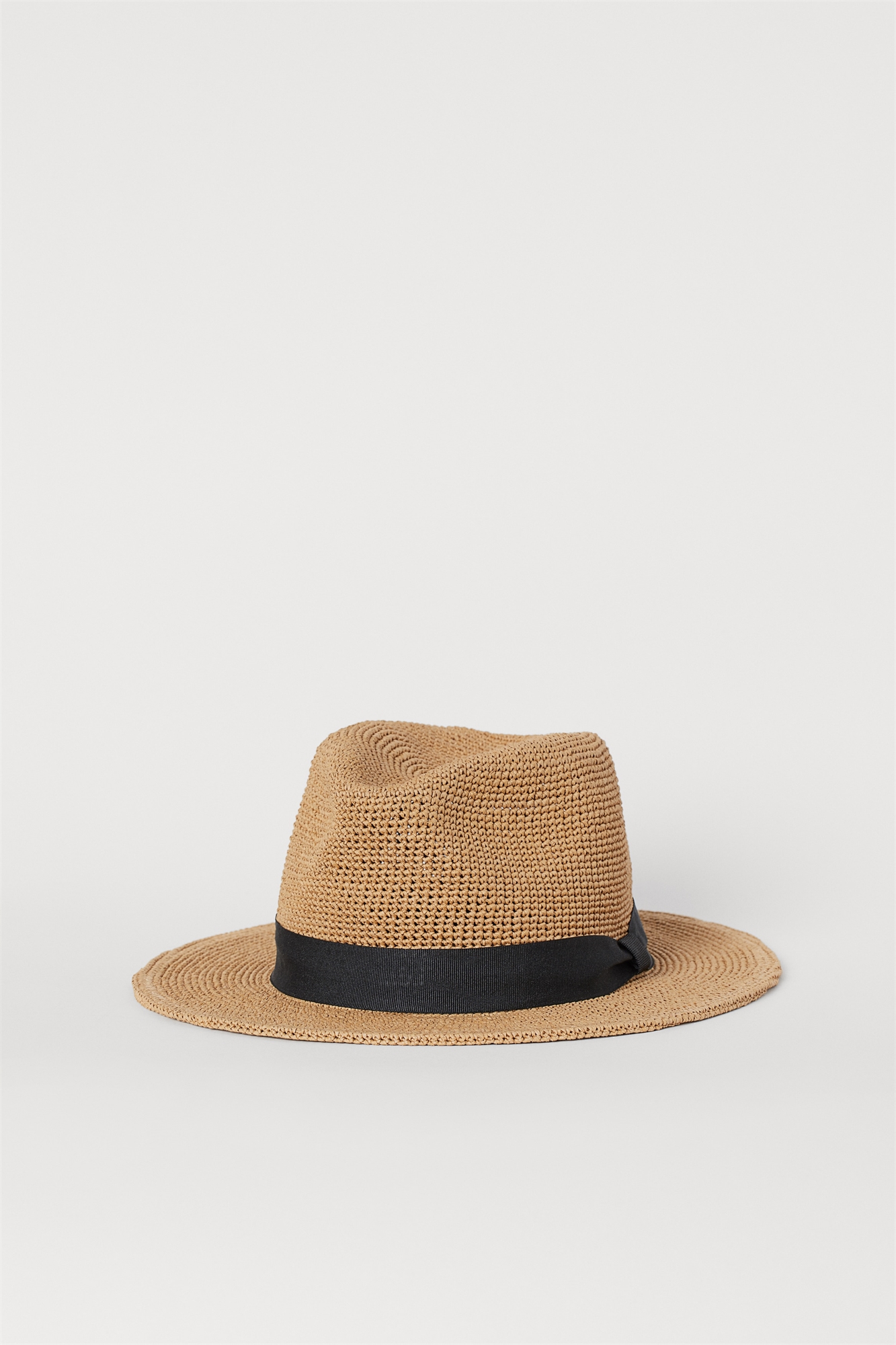 Шляпа из плетеной бумажной соломки с ребристой шляпной лентой и ободком шириной 6 см.