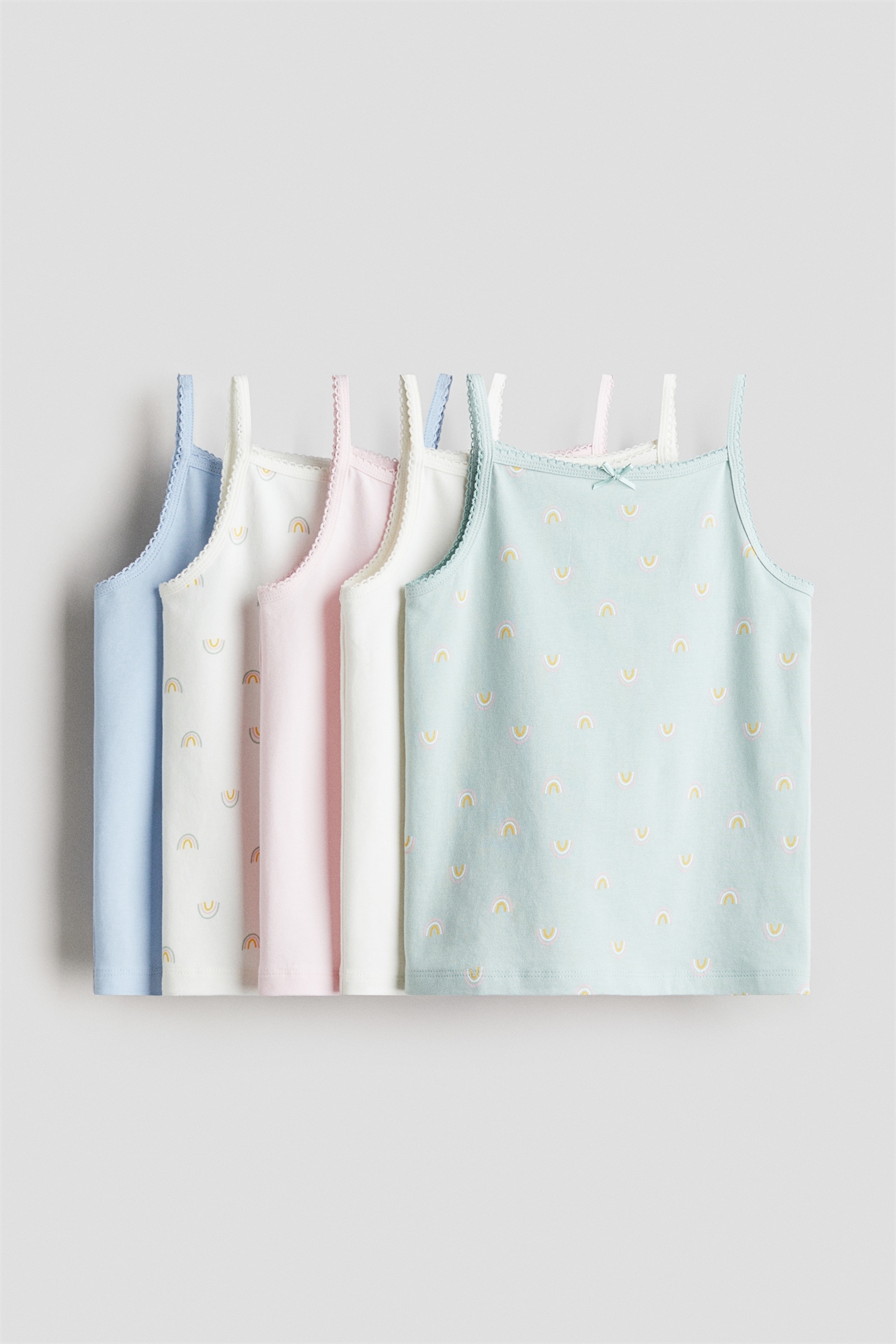 Майки из хлопкового джерси с узкими бретелями, отделкой пико сверху и декоративным атласным бантом спереди.