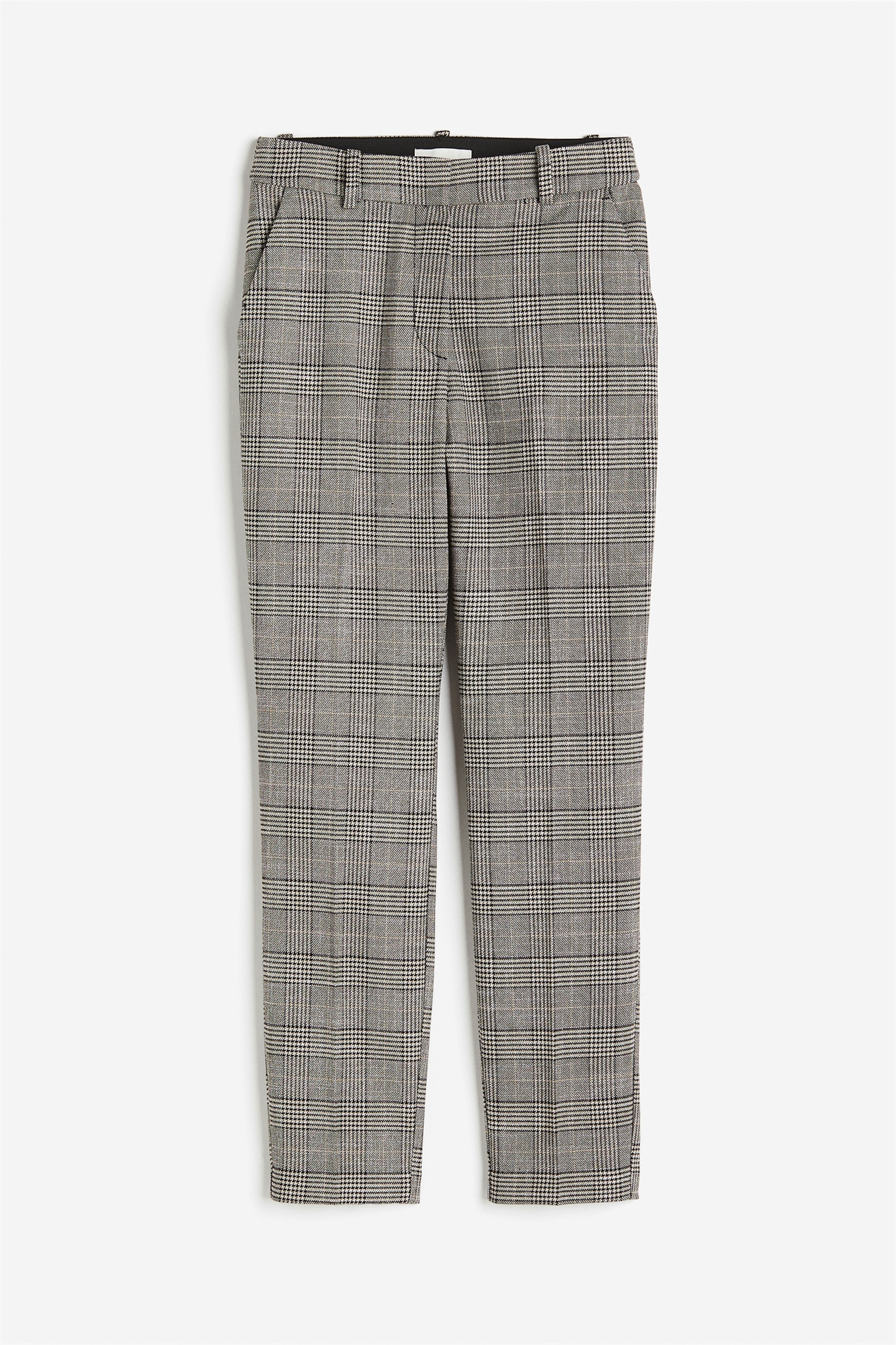 Брюки-сигареты длиной до щиколотки из эластичного материала. Регулярная талия со скрытой эластичной резинкой, ширинка на молнии со скрытой застежкой на крючок и глазок, боковые карманы, фальшивые задние карманы и зауженные ноги.
