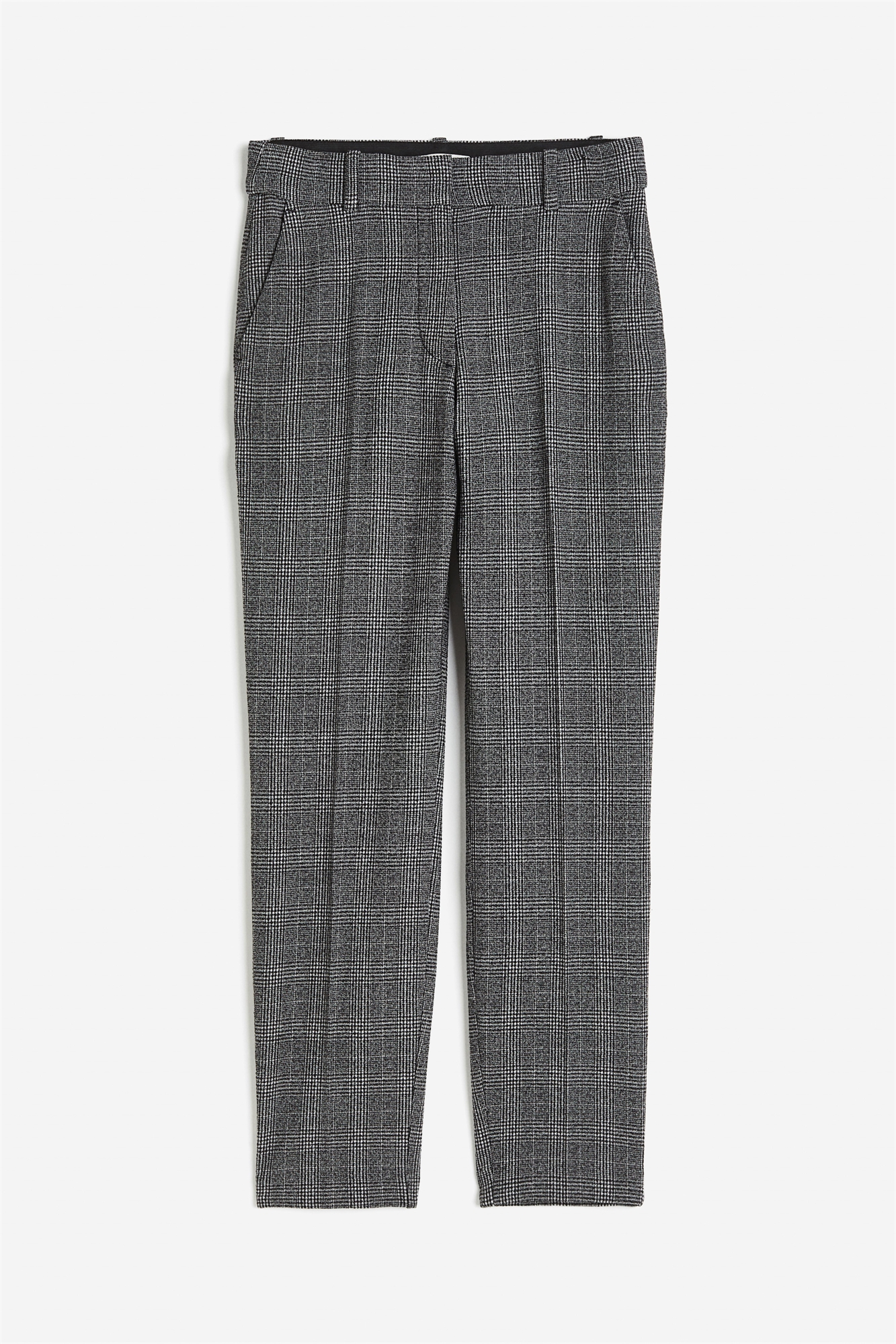 Брюки-сигареты длиной до щиколотки из эластичного материала. Регулярная талия со скрытой эластичной резинкой, ширинка на молнии со скрытой застежкой на крючок и глазок, боковые карманы, фальшивые задние карманы и зауженные ноги.