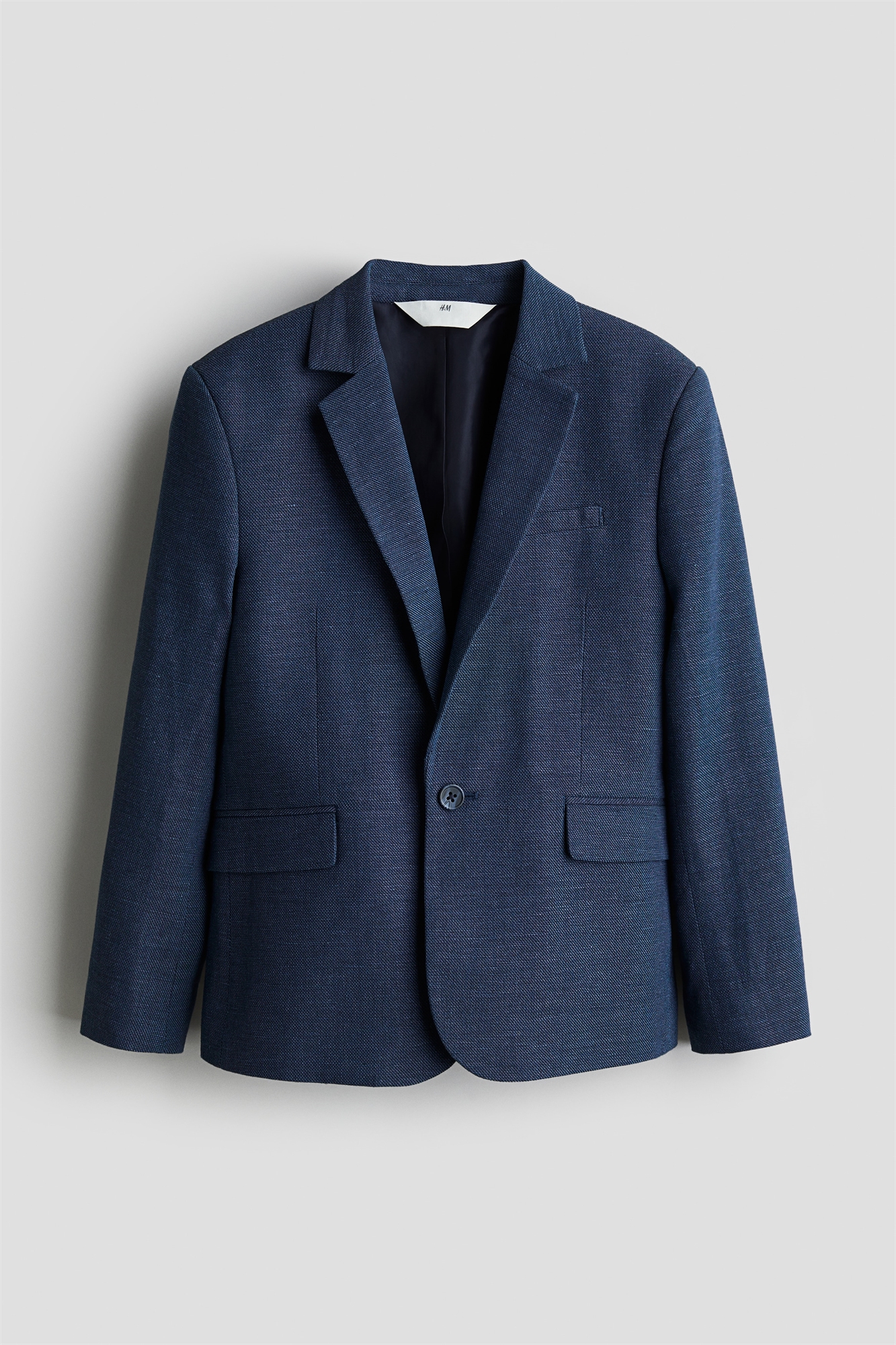 Однобортный пиджак из фактурной ткани с лацканами с вырезом, декоративным нагрудным карманом и декоративными накладными карманами. Декоративные пуговицы на рукавах и походный разрез сзади. На подкладке.