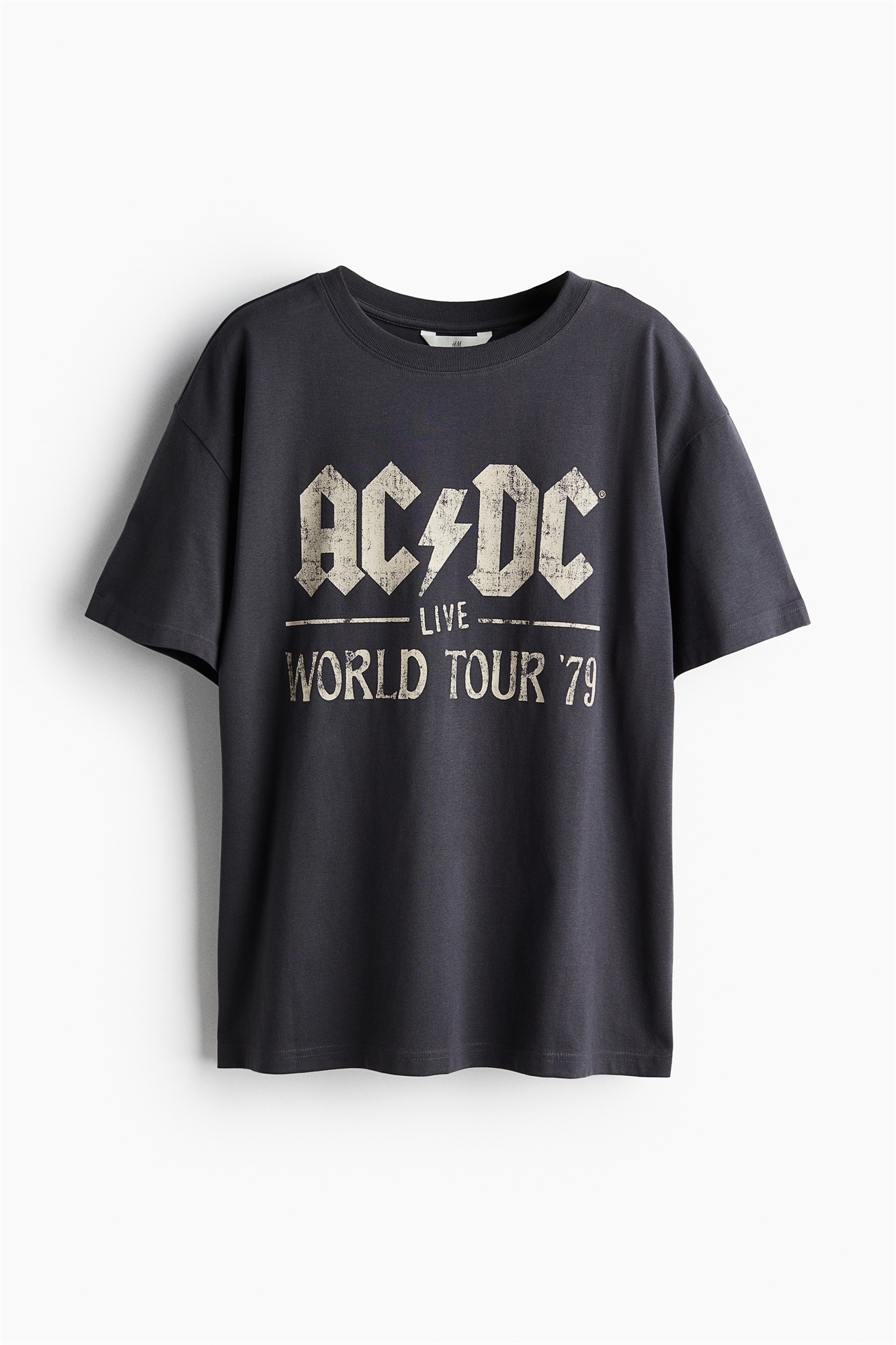 Футболка оверсайз из мягкого хлопкового джерси с принтом спереди, круглым ребристым вырезом и слегка спущенными плечами.