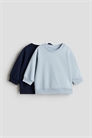 Топы с длинными рукавами из мягкой хлопчатобумажной ткани в виде толстовки с кнопкой на одном плече (кроме размеров 2-4Y). Окантовка по вырезу горловины, манжетам и подолу. Мягкий начес внутри.