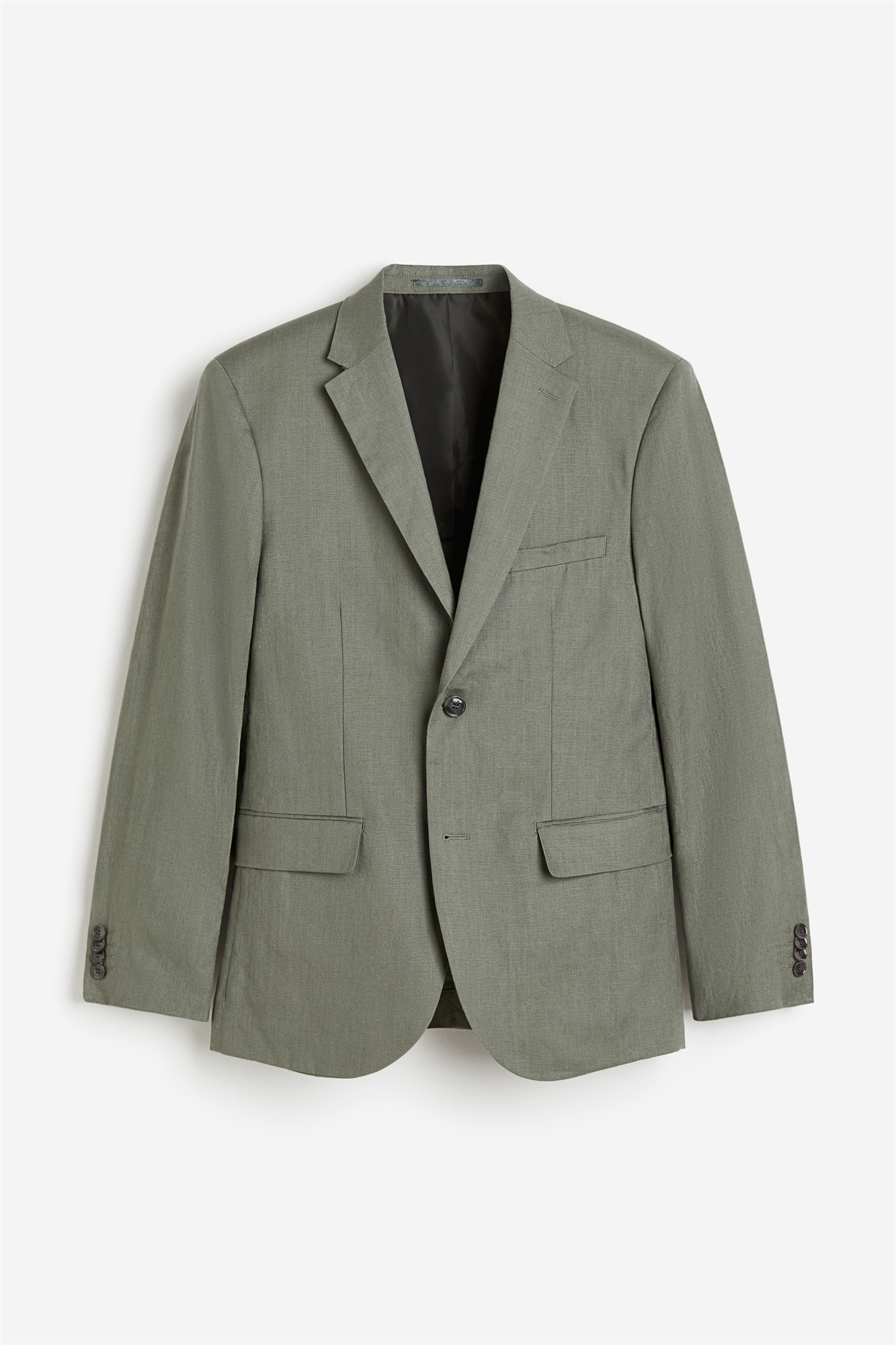 Однобортный пиджак из льняного полотна с узкими лацканами с вырезом, декоративной петлей для пуговиц, нагрудным карманом, накладными передними карманами и двумя внутренними карманами. Зауженный крой с двумя пуговицами спереди, декоративными пуговицами на манжетах и одним вентиляционным отверстием сзади. На подкладке. Ткань из льна хорошо пропускает воздух, прекрасно гладится и мнется, а также смягчается со временем.