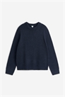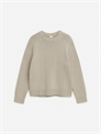 Джемпер крупной вязки, выполненный гладью, с завышенной посадкой и приталенным силуэтом. Изготовлен из мягкой шерсти с добавлением нейлона для придания легкости. Модель с вырезом для экипажа и отделкой в рубчик.