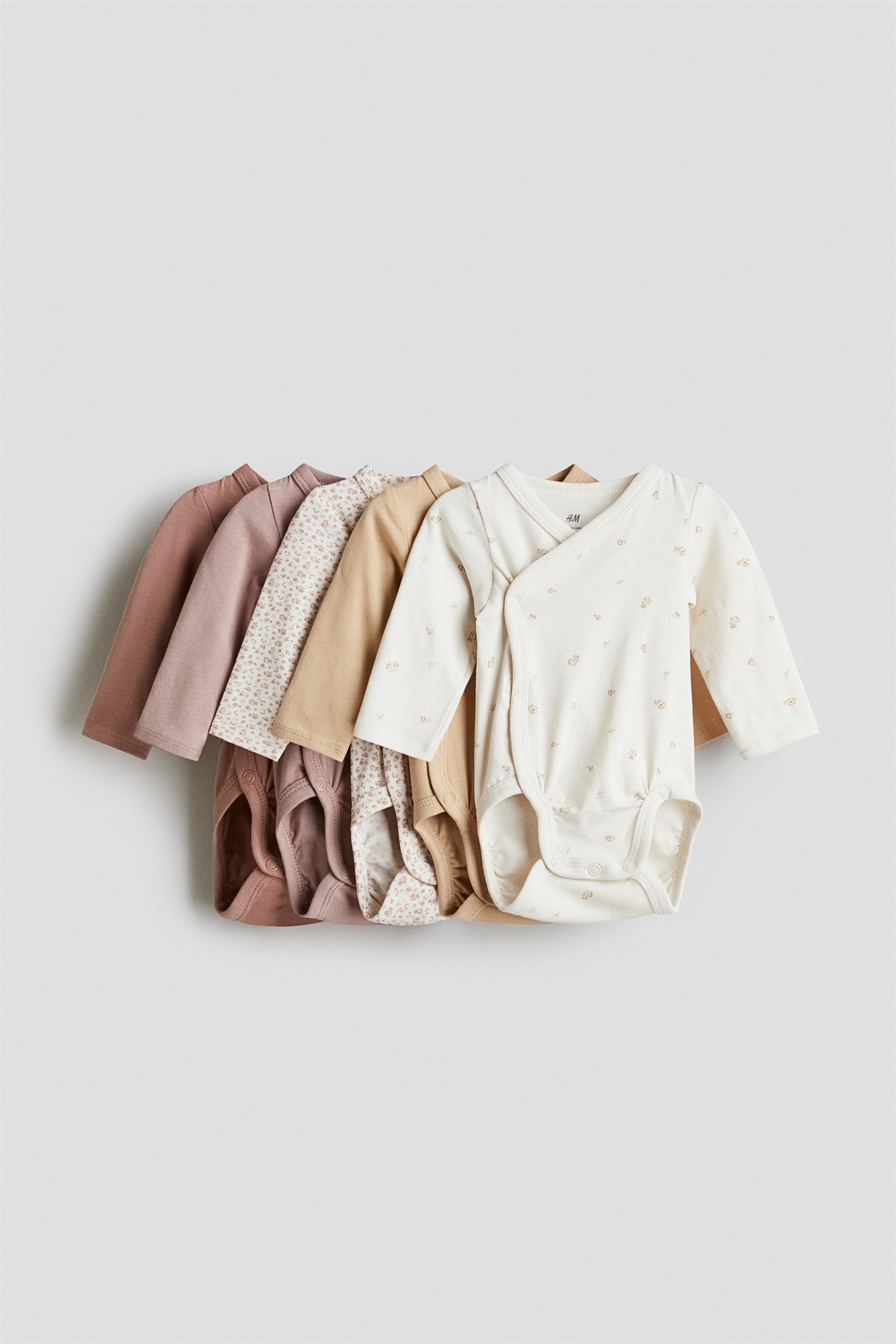 Боди с длинными рукавами из супермягкого хлопкового джерси. Заворачивающаяся передняя часть с застежками по бокам и внизу для удобства переодевания. Швы вокруг ножек для более удобного и плотного прилегания подгузника.