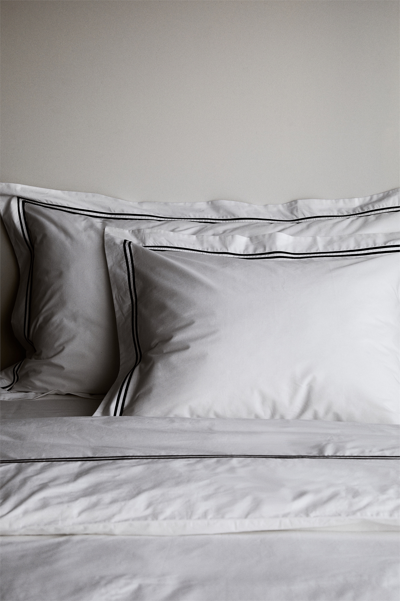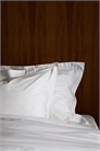 Односпальный комплект постельного белья из хлопковой перкали с вышивкой и количеством нитей 300. Пододеяльник застегивается снизу на пуговицы. Одна наволочка с отверстием для конверта.