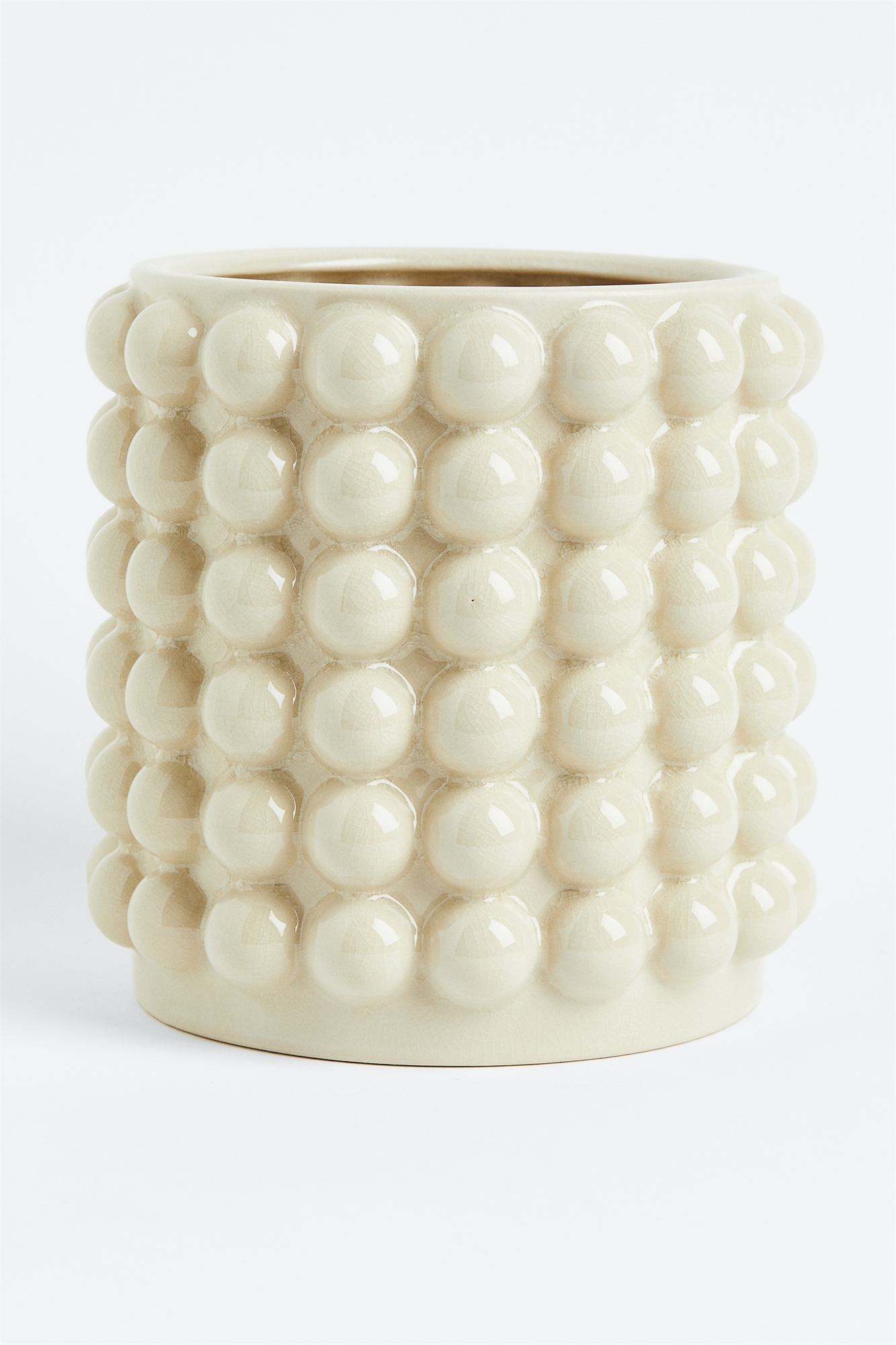 Горшок для растений из глазурованного пузырчатого керамогранита. Внутренний диаметр ок. 17 см, высота 21 см.