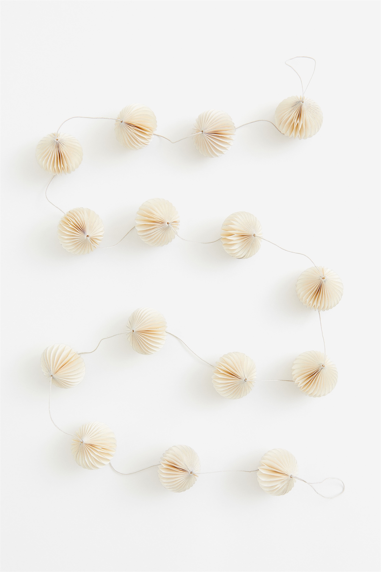 Гирлянда с круглыми бумажными украшениями с блестящими краями. Диаметр украшений ок. 6 см. Длина гирлянды ок. 2,5 м.