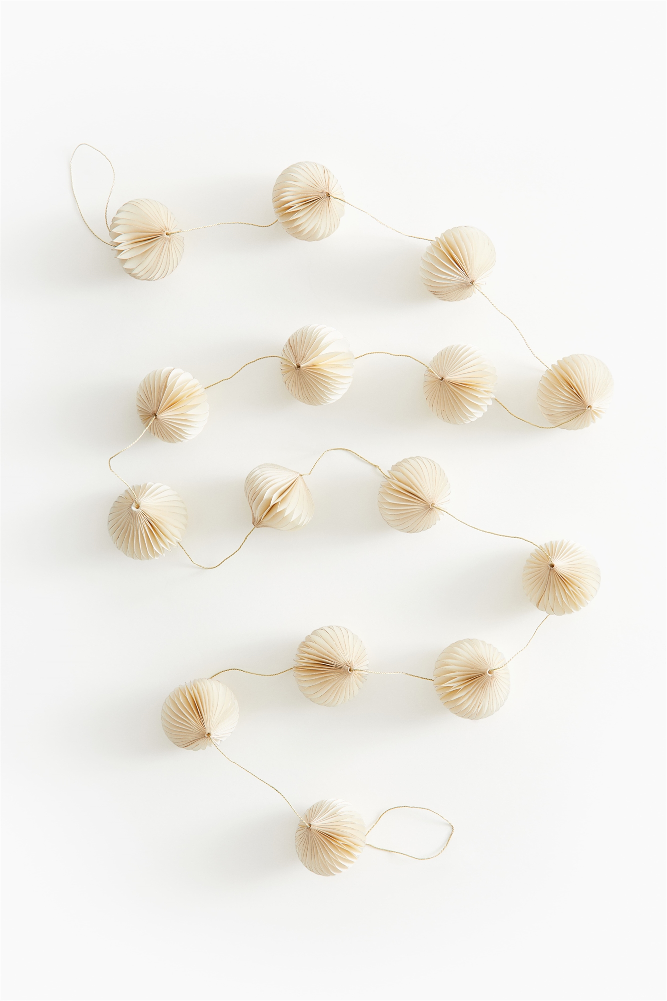 Гирлянда с круглыми бумажными украшениями с блестящими краями. Диаметр украшений ок. 6 см. Длина гирлянды ок. 2,5 м.