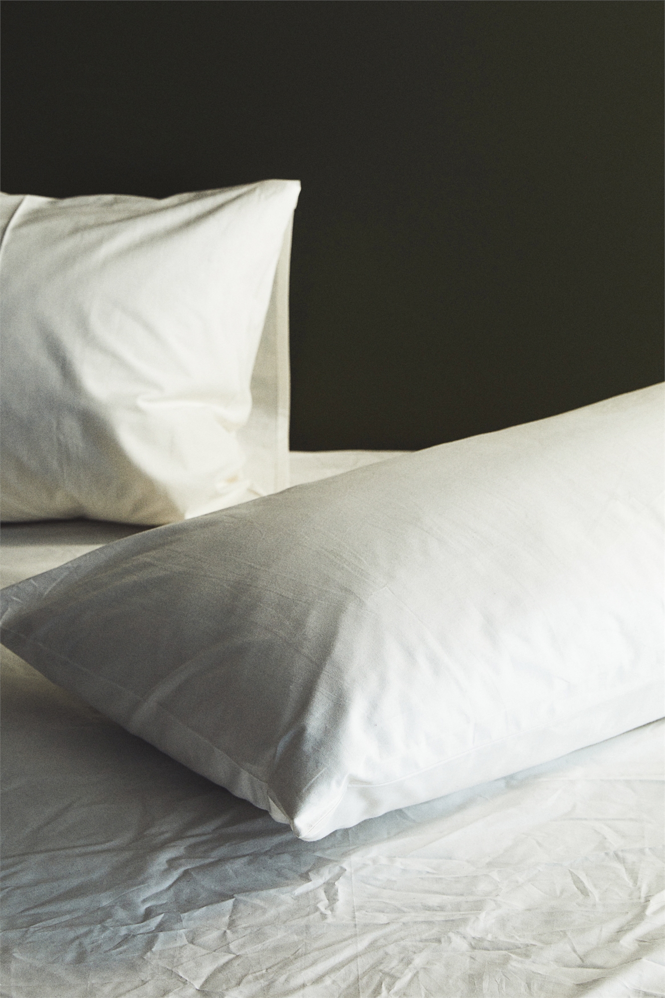 Наволочка из тонкого хлопкового переплетения с количеством нитей 144. Конверт с отверстием.