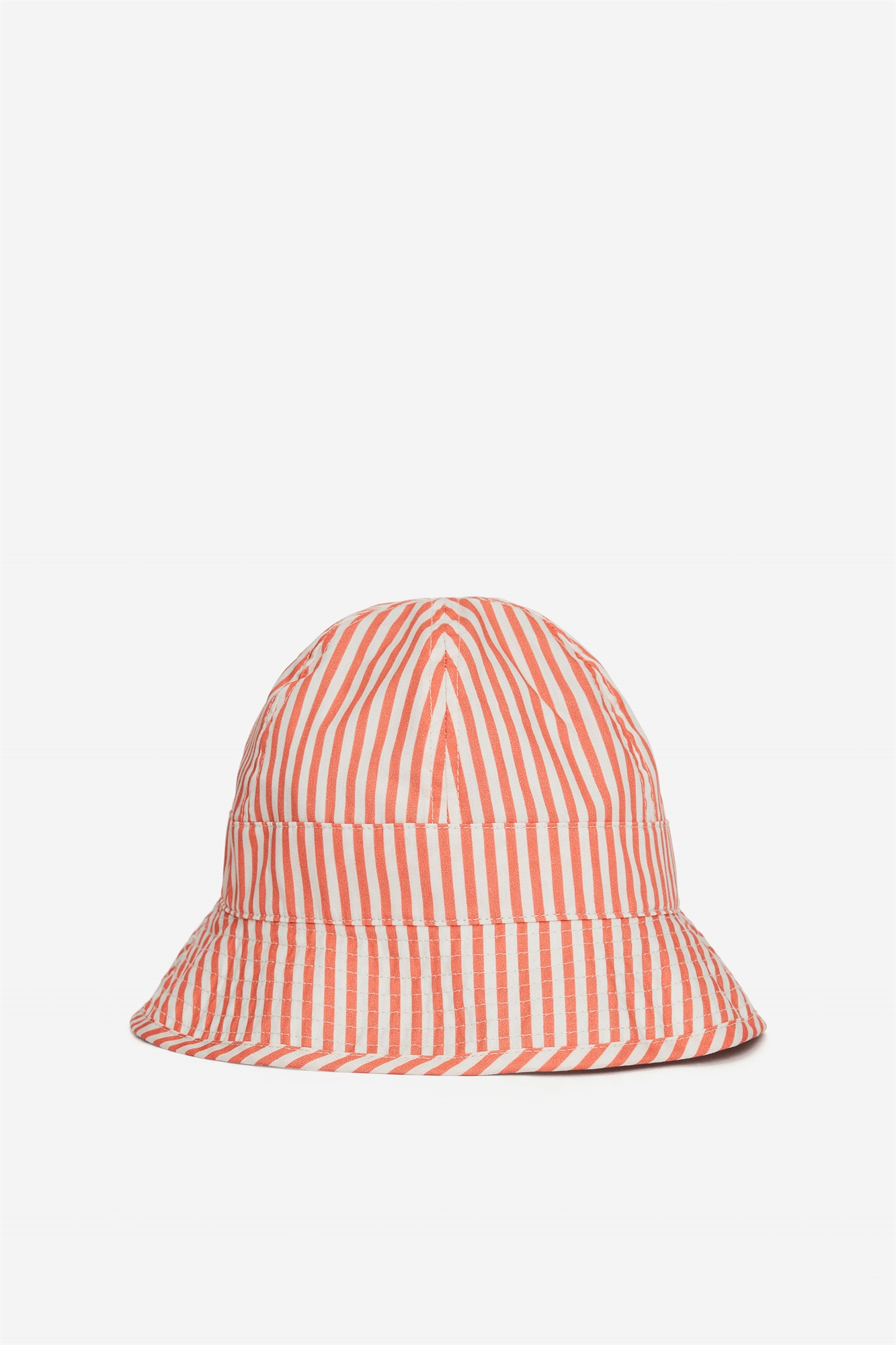 Изготовленная из хлопчатобумажного полотна, эта шляпа на завязках тщательно продумана с учетом безопасности ребенка. Эластичный затылочный элемент, спрятанный в ободке с помощью ремешка с крючками и петлями, можно откинуть для дополнительной защиты от солнца. Ремешок под подбородком имеет регулируемый ограничитель, а также отстегивающуюся застежку для безопасности.