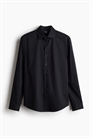 Рубашка из хлопкового микса с отложным воротником, классической передней частью и передом. Длинные рукава с регулируемыми пуговицами на манжетах и рукавной планкой с пуговицей. Аккуратный закругленный подол. Зауженный крой, облегающий контуры тела и создающий приталенный силуэт.