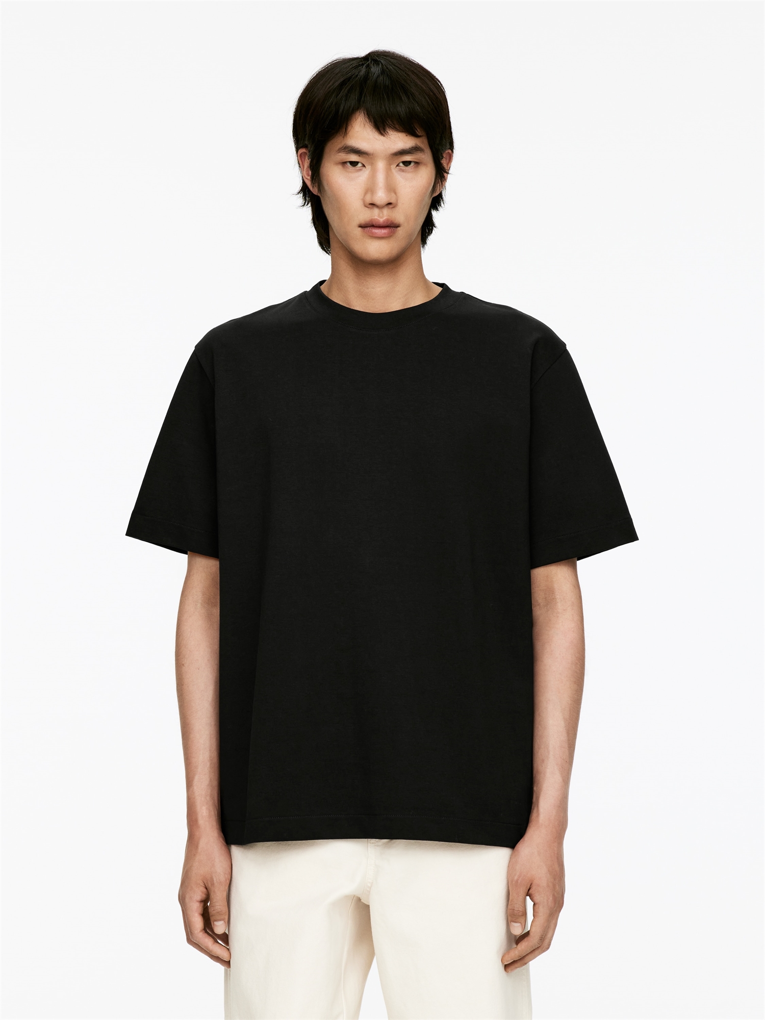 Эта хлопковая футболка из плотной ткани интерлок-джерси слегка тянется. Модель с вырезом горловины и обычным кроем.