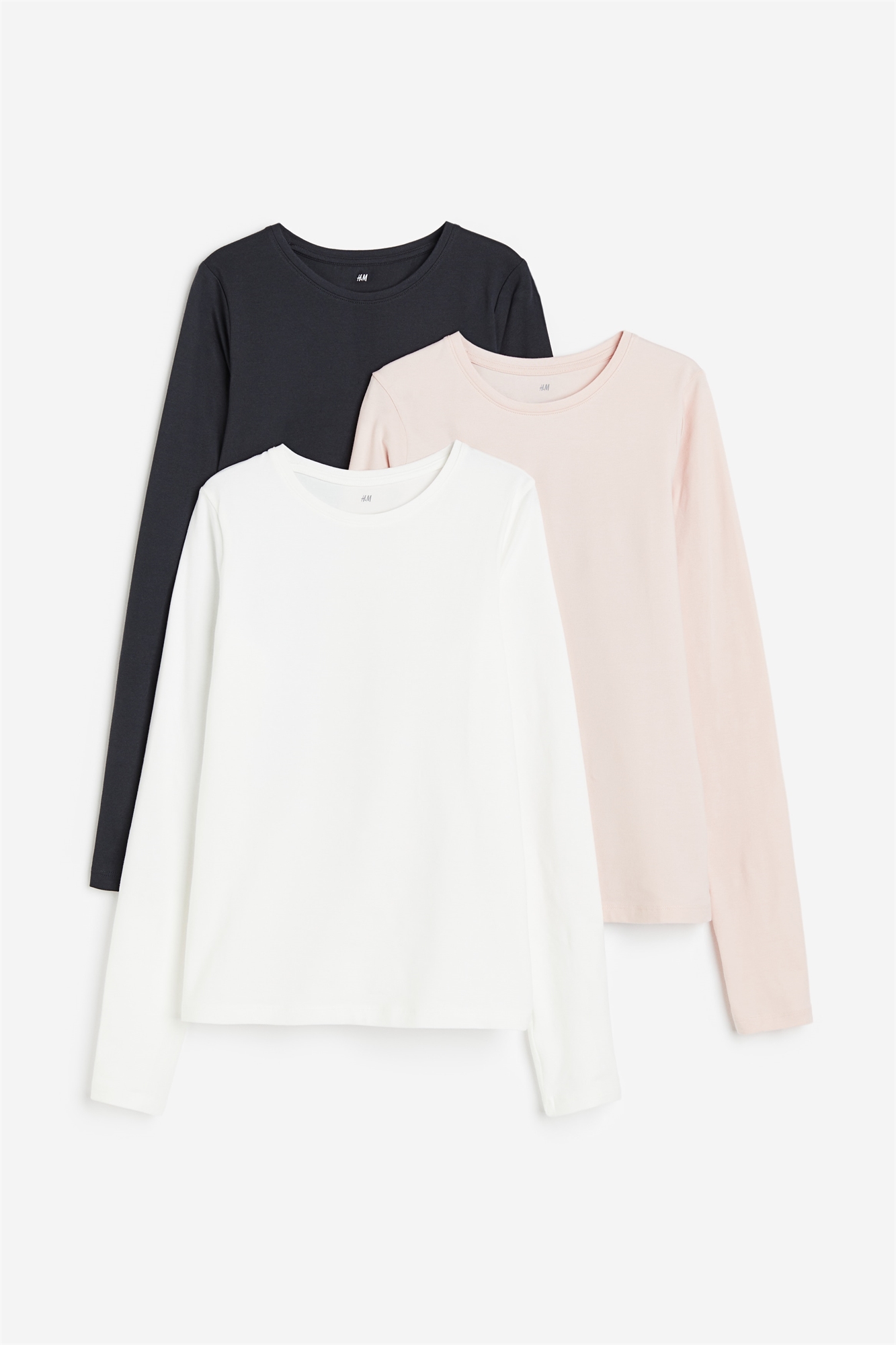 Базовые топы с длинными рукавами из мягкого хлопкового джерси с узкой тесьмой по вырезу горловины.