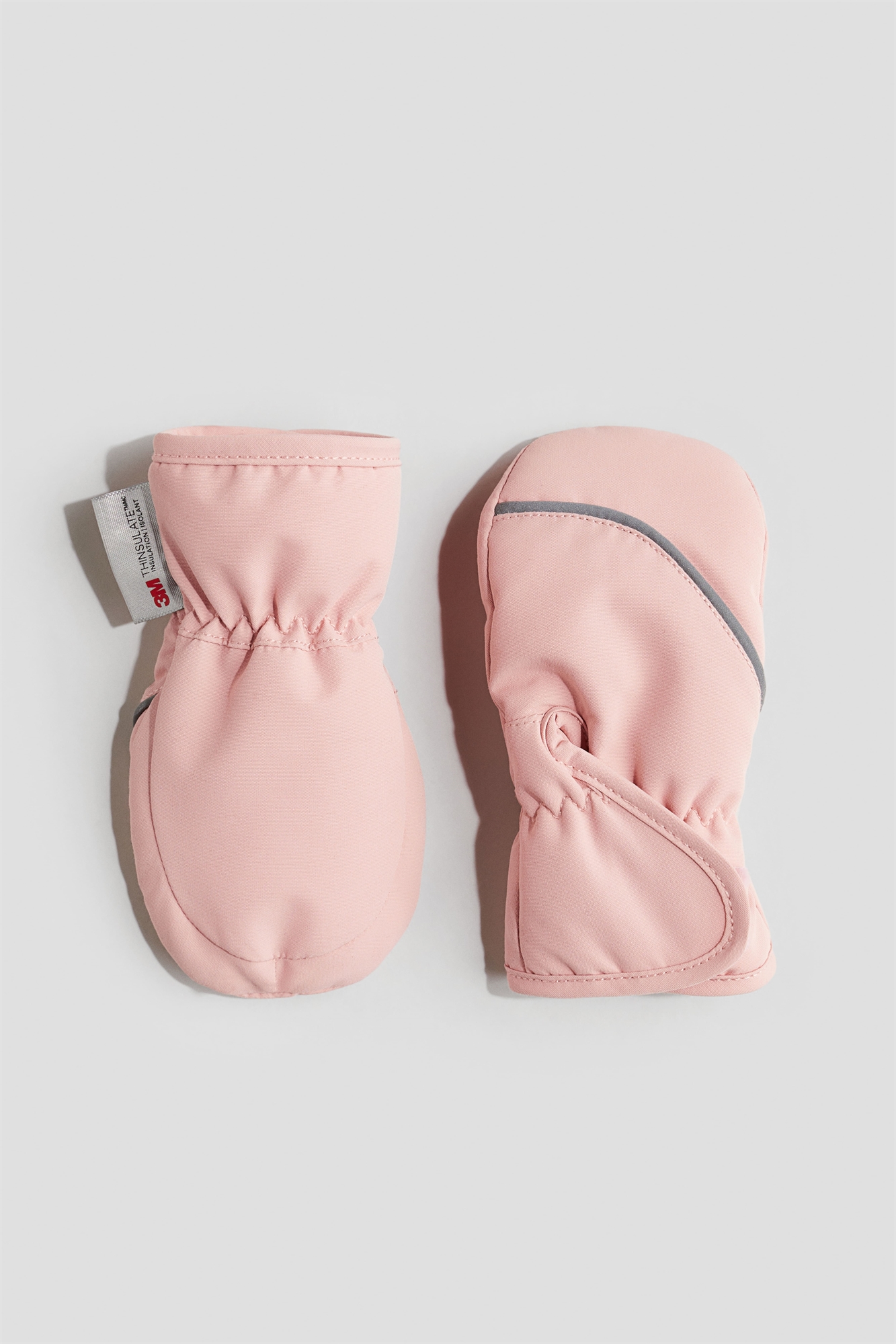 Варежки из ветрозащитной, водоотталкивающей функциональной ткани со светоотражающей отделкой на верхней части. Эластичная резинка на запястьях и застежка на крючок и петлю в верхней части. Мягкая подкладка Thinsulate™. Размер 2-6M без большого пальца. Варежки имеют водоотталкивающее покрытие без фторуглеродов.