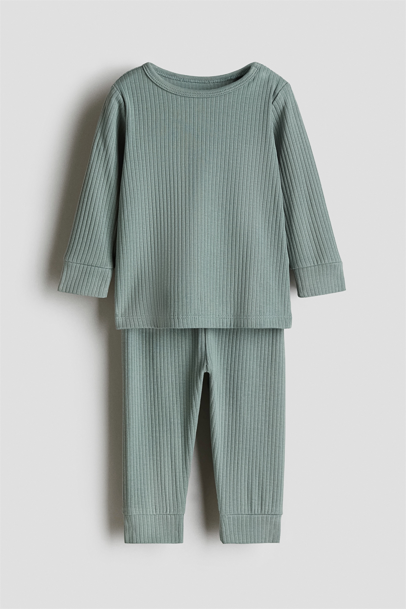 Комплект из топа с длинными рукавами и брюк из мягкого ребристого хлопкового джерси. Топ со скрытой застежкой на одном плече (кроме размеров 2-4Y) и ребристыми манжетами. Брюки с утяжкой на талии и ребристыми манжетами.