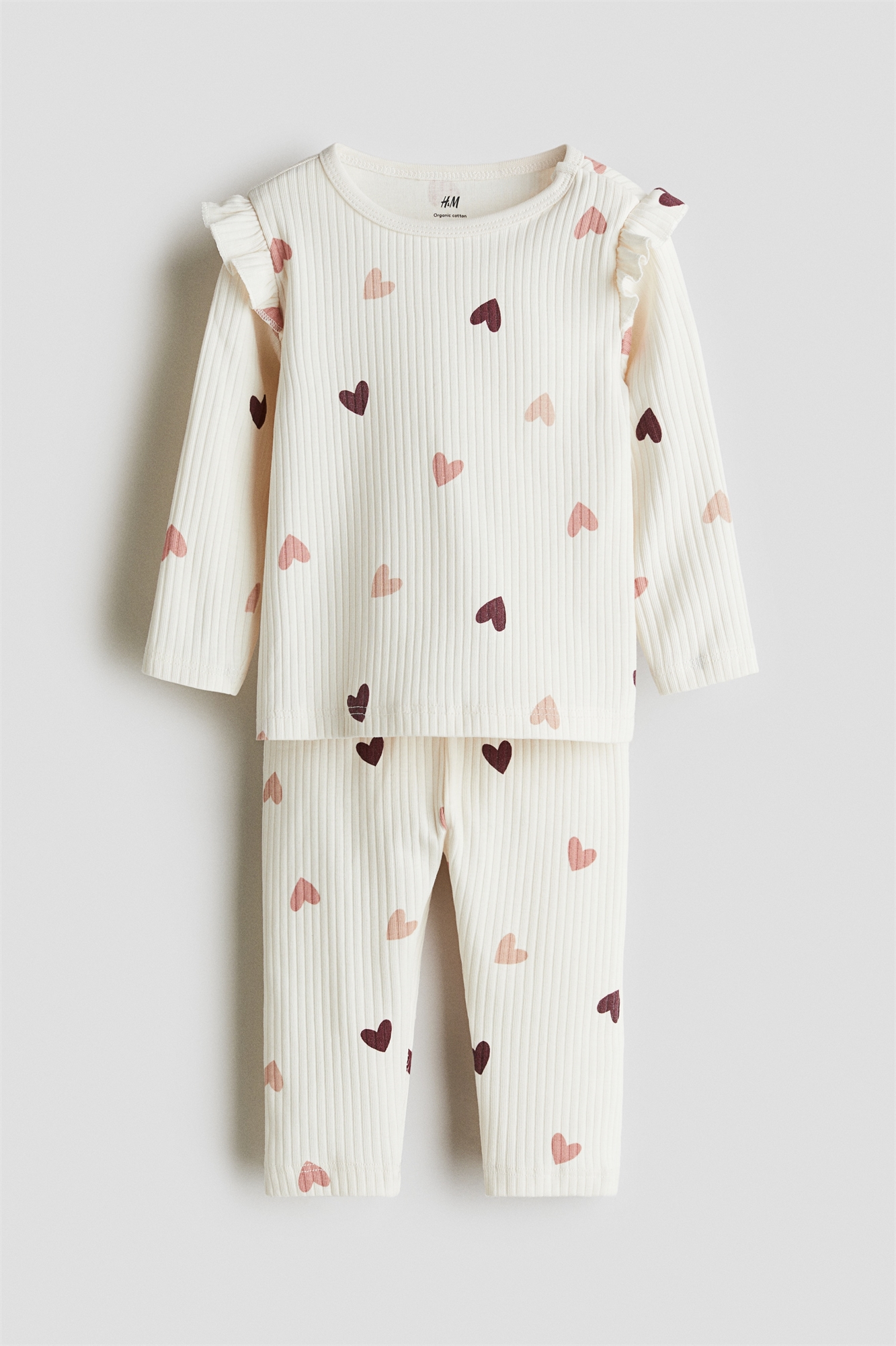 Комплект из топа с длинными рукавами и брюк из мягкого ребристого хлопкового джерси. Топ со скрытой застежкой на одном плече (кроме размеров 2-4Y) и ребристыми манжетами. Брюки с утяжкой на талии и ребристыми манжетами.