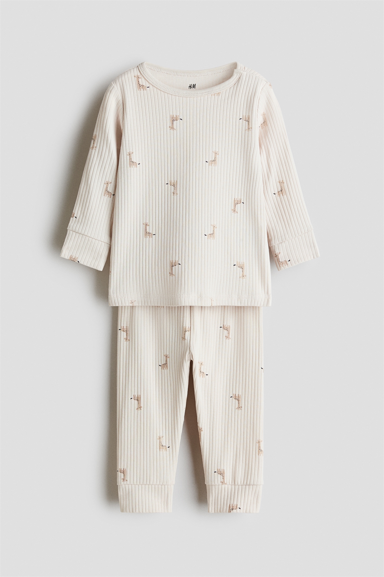 Комплект из топа с длинными рукавами и брюк из мягкого ребристого хлопкового джерси. Топ со скрытой застежкой на одном плече (кроме размеров 2-4Y) и ребристыми манжетами. Брюки с утяжкой на талии и ребристыми манжетами.
