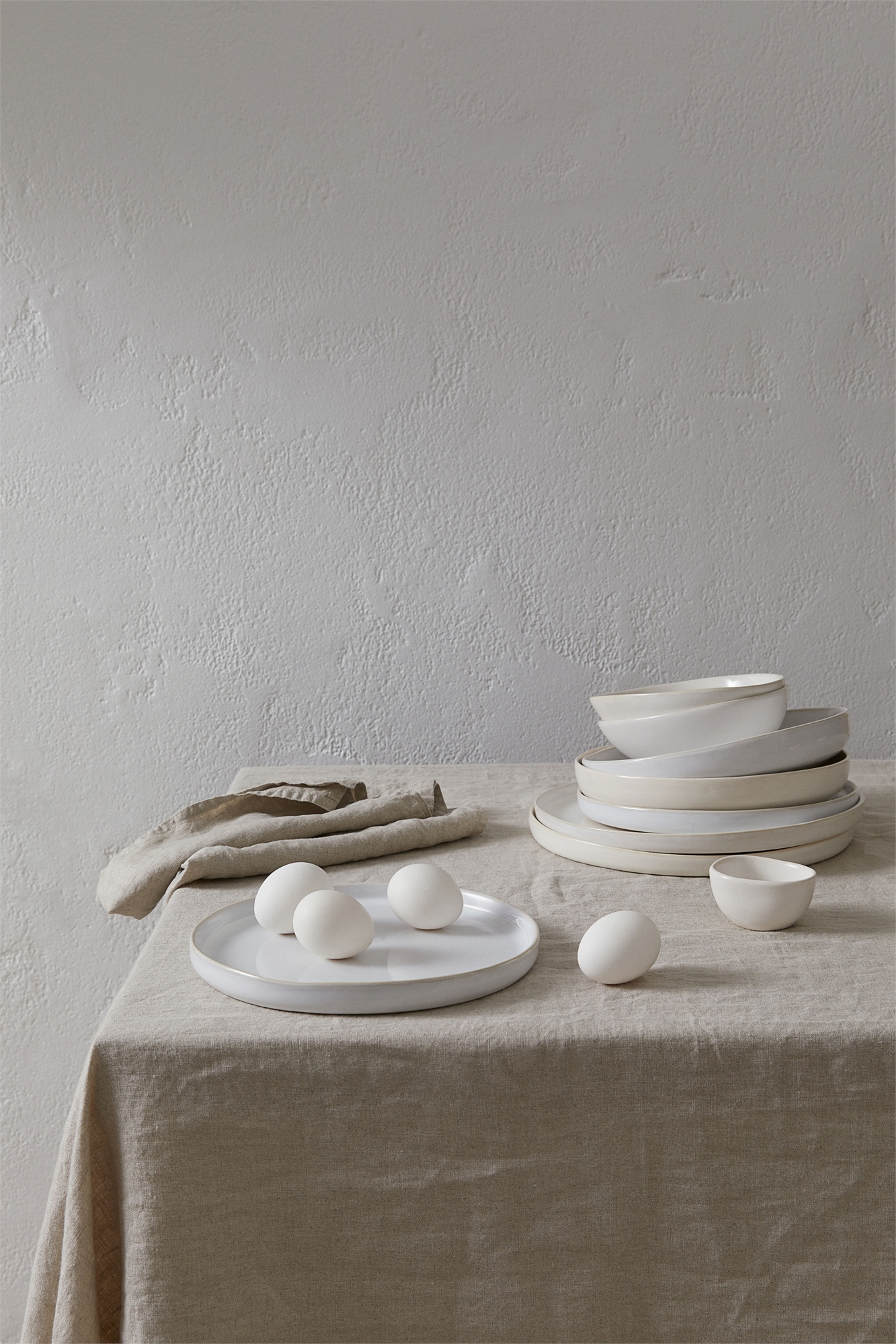 Тарелка из глазурованного керамогранита с небольшим ободком. Высота 1,8 см. Диаметр 22 см. Тарелка покрыта реактивной глазурью, которая создает пеструю окраску, придавая каждой тарелке уникальный вид.