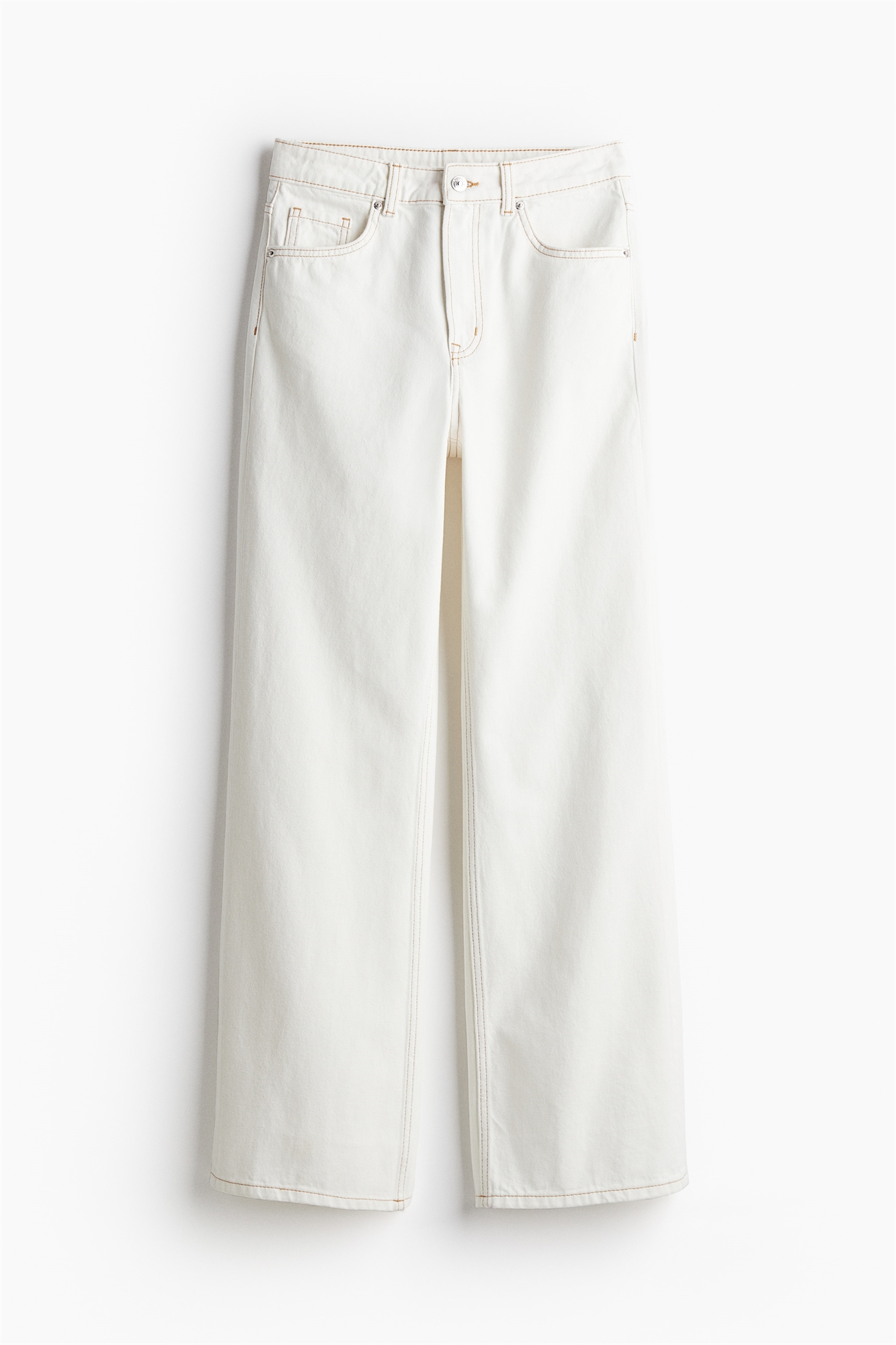 Джинсы с 5 карманами из моющегося хлопкового денима с высокой талией, ширинкой на молнии и пуговице и широкими прямыми ногами.