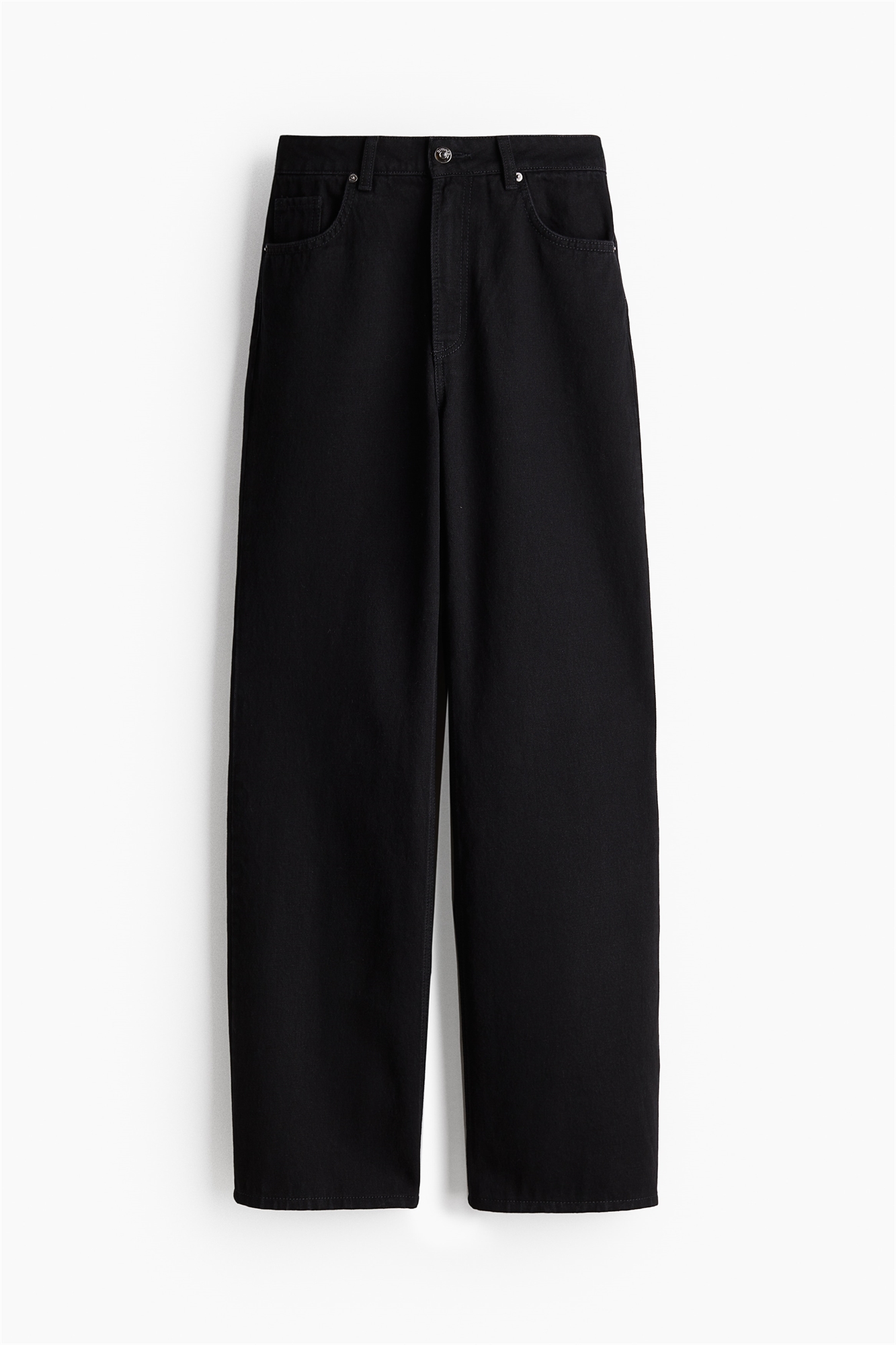 Джинсы с 5 карманами из моющегося хлопкового денима с высокой талией, ширинкой на молнии и пуговице и широкими прямыми ногами.