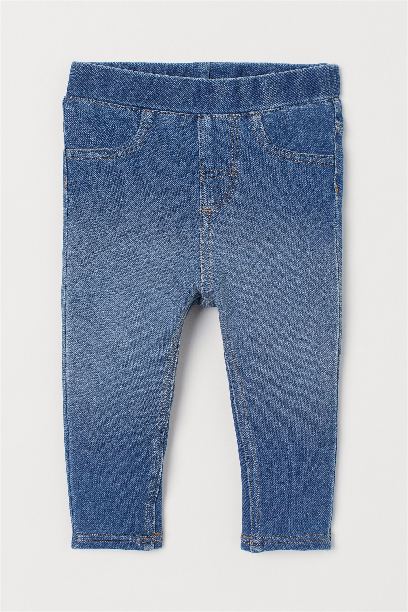 Джеггинсы из мягкого, эластичного денима с эластичным поясом, фальшивой ширинкой и фальшивыми передними карманами.