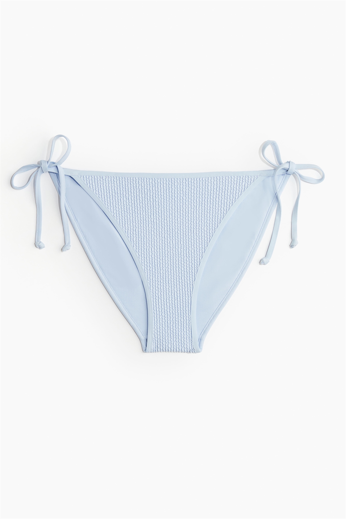 Полностью закрытые трусы-бикини со средней талией, завязками по бокам и средним покроем сзади.
