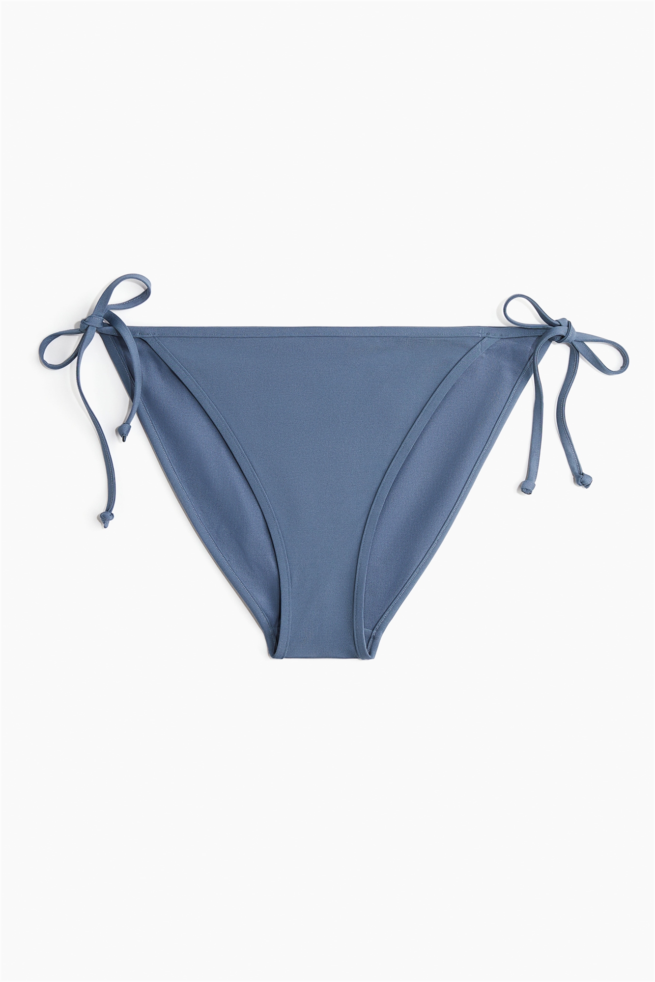 Полностью закрытые трусы-бикини со средней талией, завязками по бокам и средним покроем сзади.
